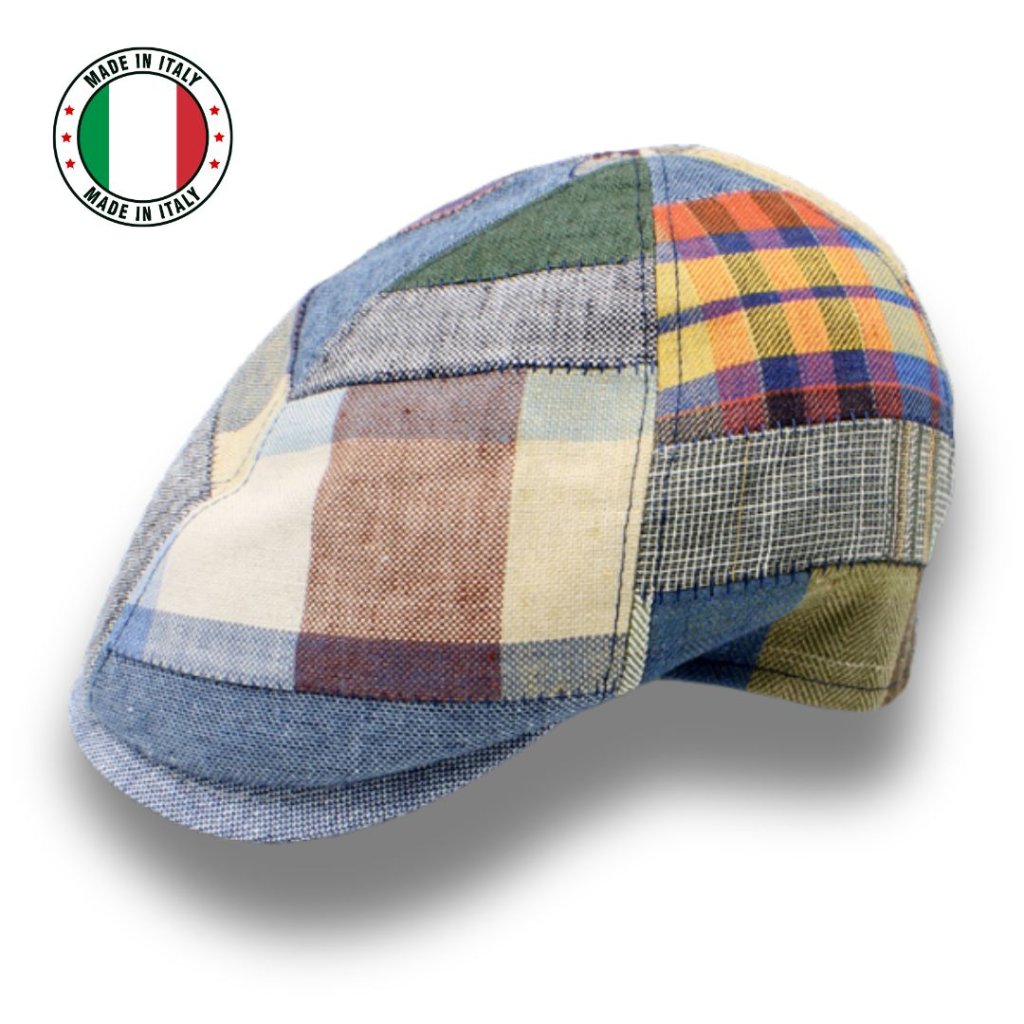 Italská bekovka precizně ušitá v úžasné kombinaci barev a modré v sepraném stylu. Díky specifické textilní technice patchwork mmůžete mít ten svůj originál! Jedná se o sešívání malých, různě barevných kousků látek tak, aby vytvářely originální vzory. Další originální kousek z pánské letní kolekce italských kloboučníků. Bekovka má skvělý pohodlný střih a podšívku. Lehoučká a vzdušná bekovka v krásných barvách je skvělým doplňkem v letních měsících a hodí se jak k volnočasovému outfitu, tak i k lehké eleganci. Tento kousek ocení pánové, ale i ženám velice sluší.