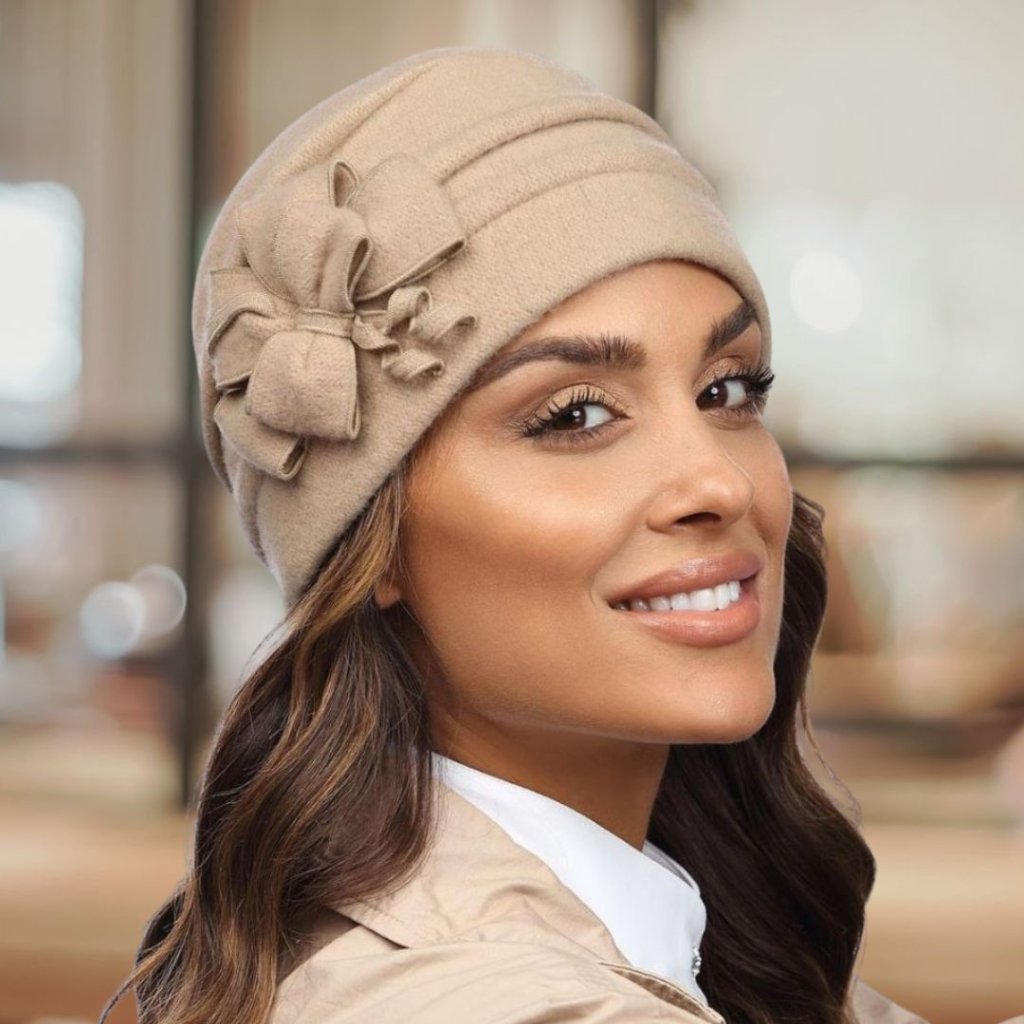 Béžová dámská vlněná čepice s mašlí W-0609/284