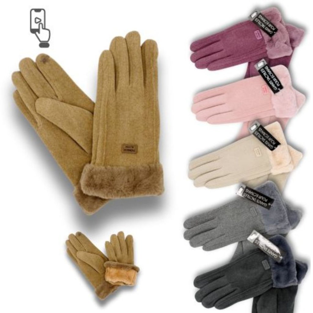 Stylový eko-kožešinový lem tón v tónu dodává rukavicím elegantní francouzský nádech.