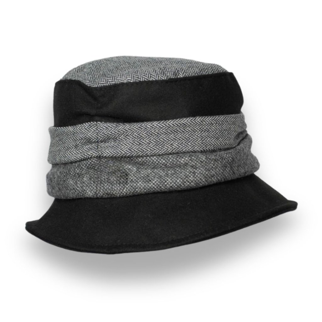 Bucket hat -Zimní šedočerný dámský klobouk - podšívka flís Ba-30195525-800