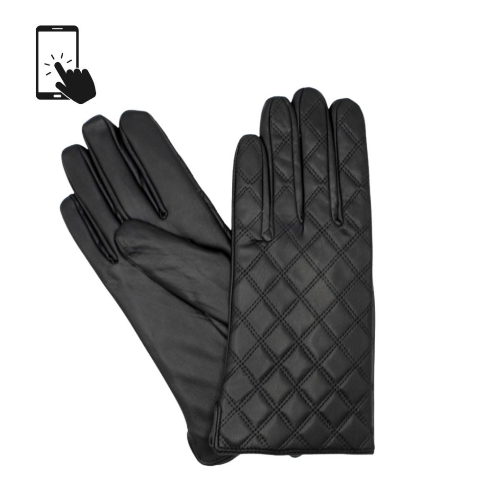 Černé dámské dotykové rukavice s podšívkou mikroplyš - eko kůže prošívaná P-17140