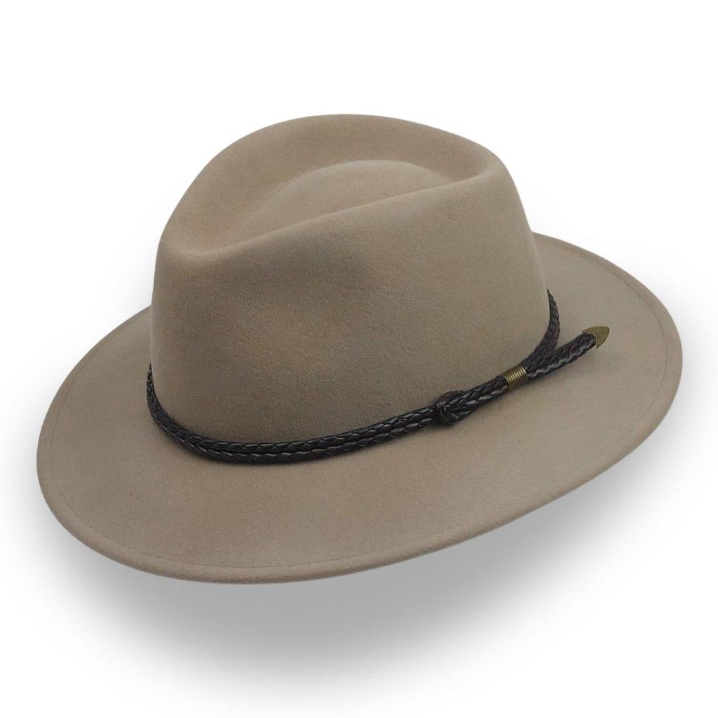 Cestovní nemačkavý voděodolný hnědobéžový klobouk-100%vlna-rolovatelný P-71123C/TA