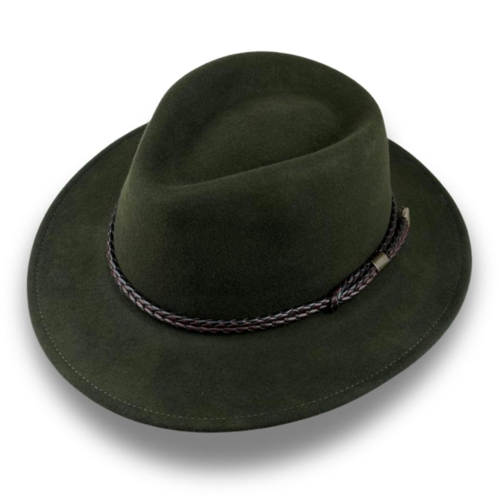 Cestovní nemačkavý voděodolný zelený klobouk-100% vlna-rolovatelný P-71123C/ZEL