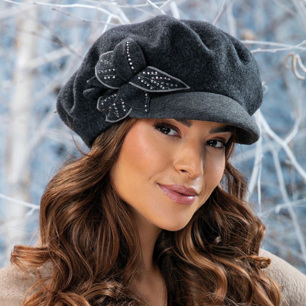 Antracitová barva působí sofistikovaně a snadno se kombinuje s kabátem i bundou. Stylový kšilt chrání před větrem a jemná aplikace na boku dodává na originalitě. Čepice je navržena s důrazem na pohodlí, eleganci a ruční řemeslné zpracování. Hodí se pro každodenní nošení i jako vkusný doplněk do města. Ideální pro ženy, které chtějí zůstat v teple, ale zároveň si zachovat svůj osobitý styl.