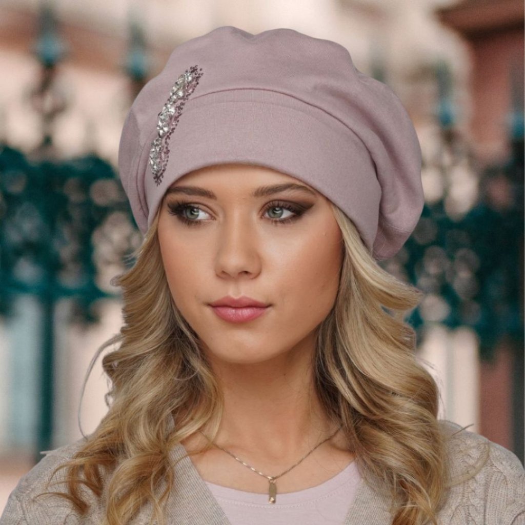 Dámská růžová čepice je precizně řemeslně zpracovaná na dotek z velmi příjemného a jemného materiálu je ozdobena luxusní ozdobou z bílých zirkonů, kterou lemují kamínky sladěné s barvou čepice tón v tónu. Pohodlná dámská čepice má baretový střih, díky kterému neutrpí váš účes a zaručuje vždy perfektní vzhled, který hlavu neobepíná. Čepice je ušitá ze dvou vrstev bavlněné tkaniny má moderním a velmi slušivý baretový střih s pružným lemem. Tuto celoroční čepici doladíte i k ležérnímu stylu oblečení. Čepici nabízíme v několika barevných provedení a také v materiálu z viskózy (umělé hedvábí).