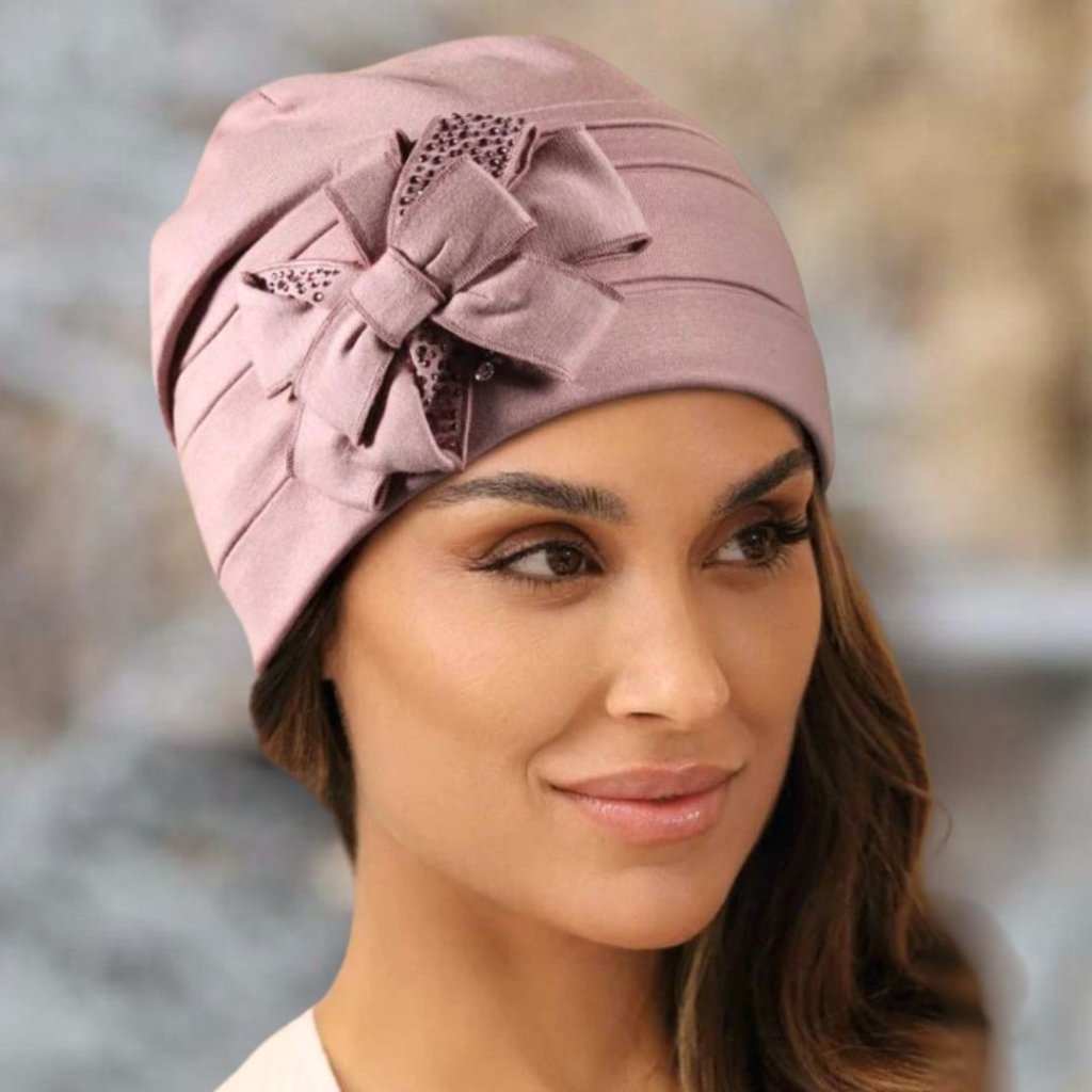 Dámská bavlněná čepice s mašlí W-0670/540 světle starorůžová