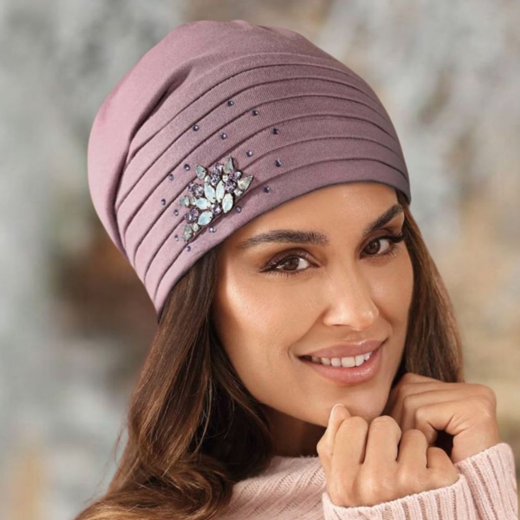 Dámská bavlněná čepice zdobená bižuterií W-0631/890 starorůžová