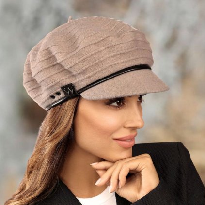 Dámská béžová zimní čepice s kšiltem 100% vlna od Krumlovanky W-0891/284