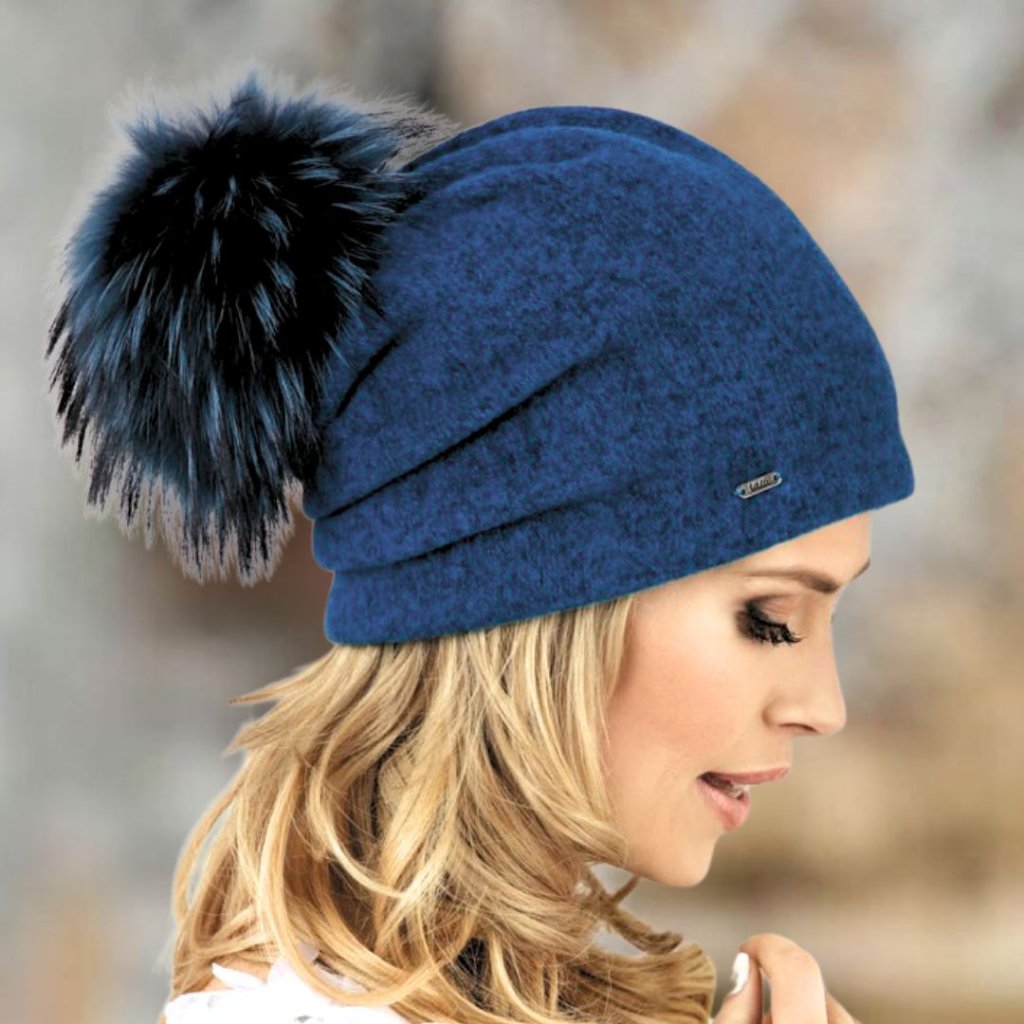 Dámská čepice s bambulí W-0004/558M modrá melange