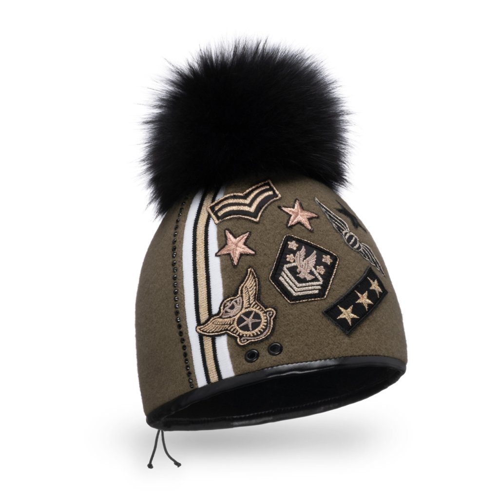 Dámská čepice s bambulí W-0264/671 tm. khaki