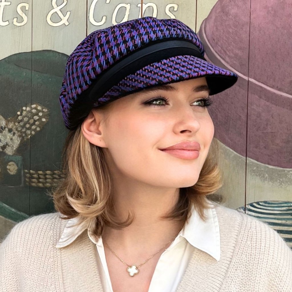 Naše fialová károvaná kapitánská čepice v minimalistickém stylu je precizně ušitá z italské tkaniny. Elegantní vzhled kapitánky dodává nádherná kvalitní tkanina a pohodlný, slušivý střih. Dámská kšiltovka má vzadu všitou pruženku pro pohodlnou regulaci velikostí.