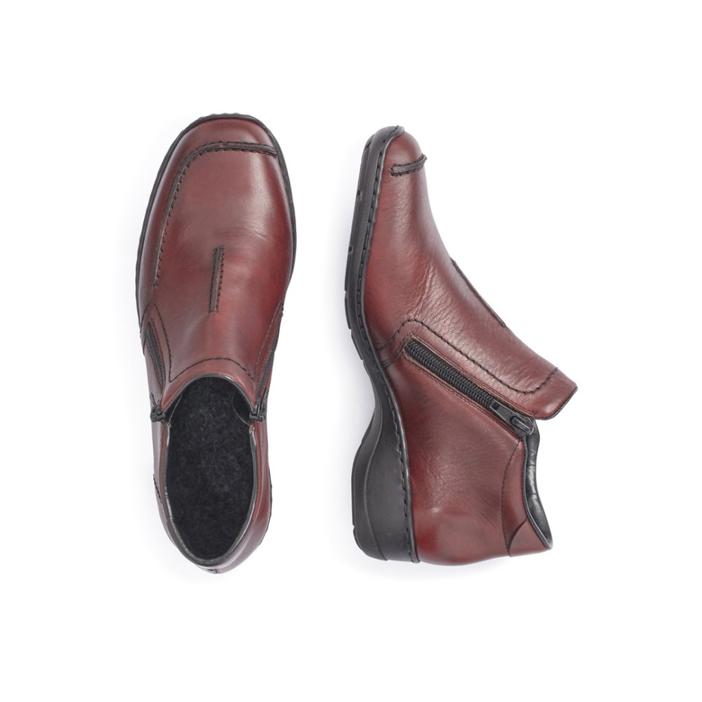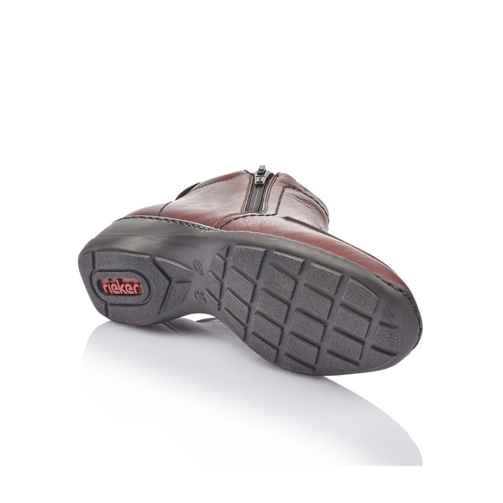 Dámské kotníkové boty RIEKER jsou vyrobeny kůže. Boty mají funkční zipy po obou stranách, díky těmto dvěma funkčním zipům se dají boty velmi dobře nazout i když máte vyšší nárt. Vnitřek má zateplení flísovou podšívkou a filcovou stélkou. Podešev s hlubším vzorkem má zabudovaný ANTISTRESS systémem, který vám zpříjemní chůzi.