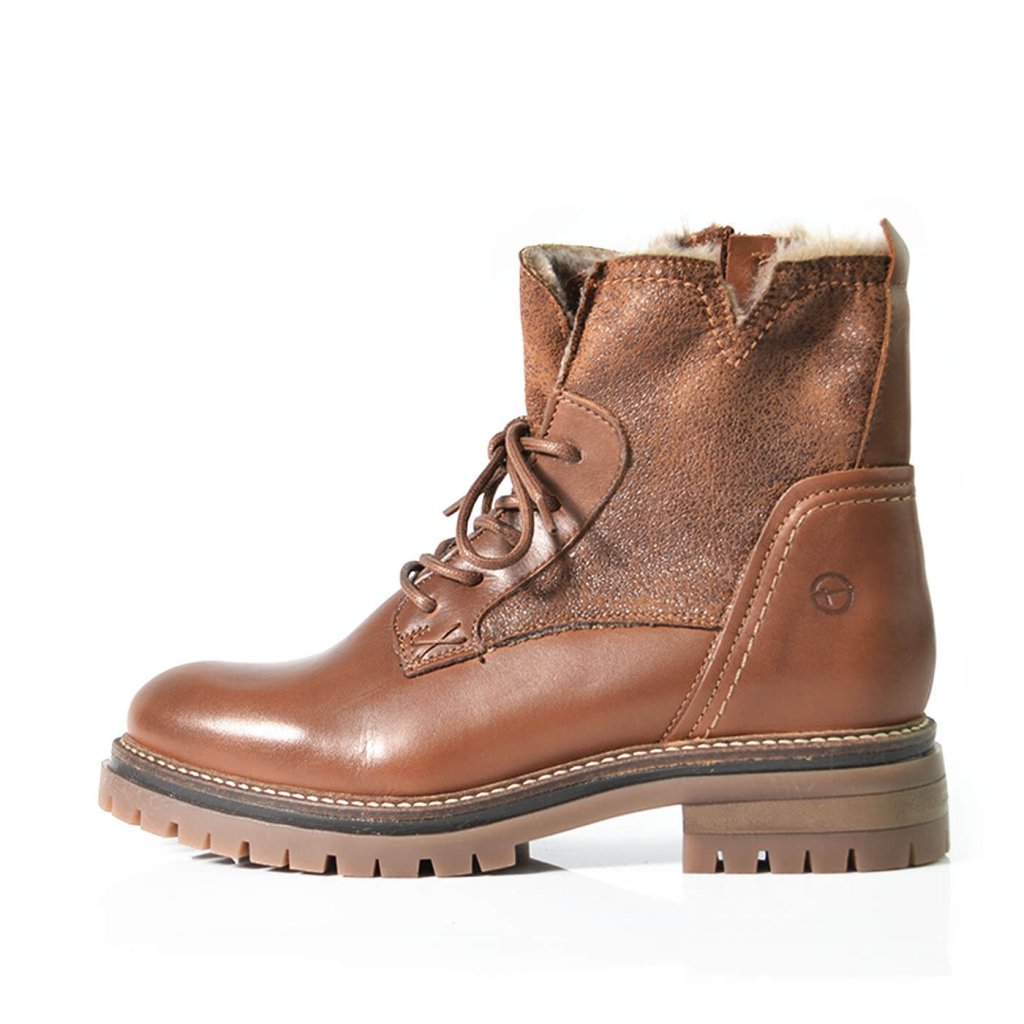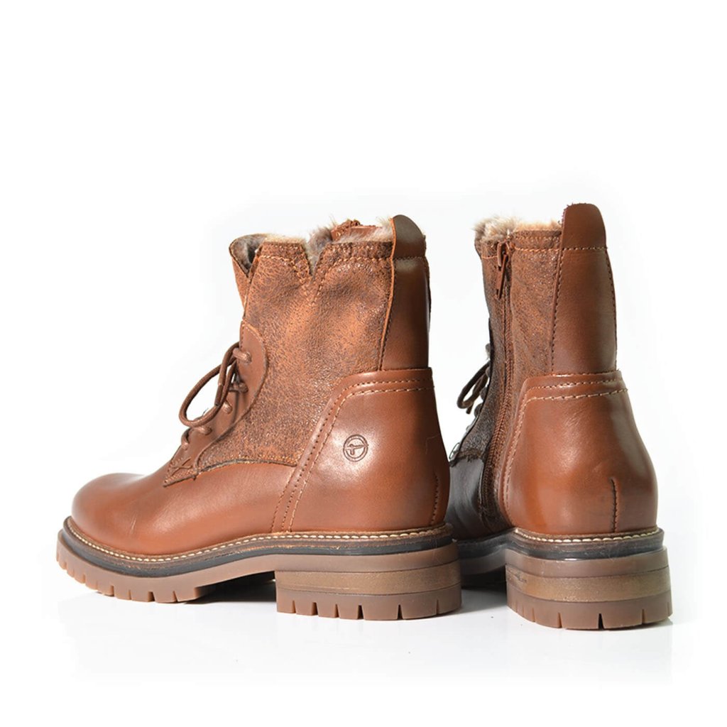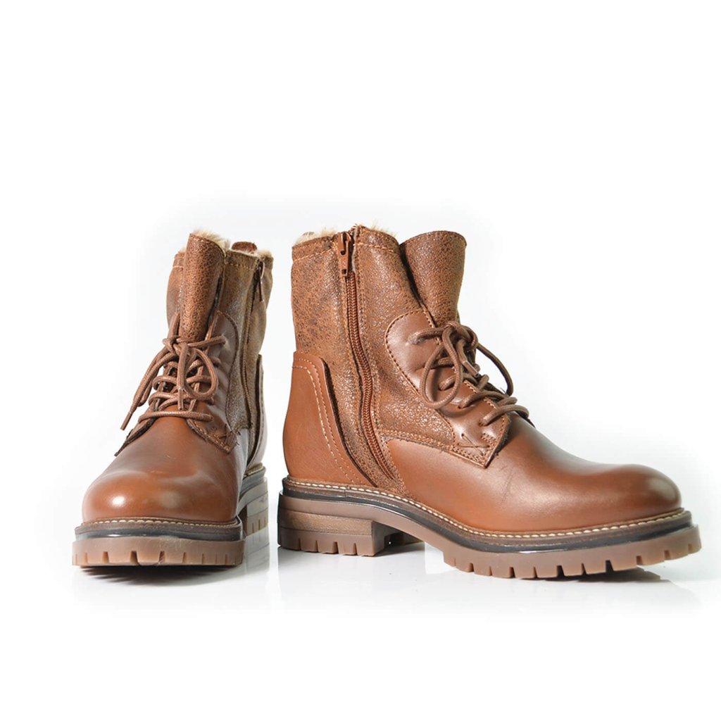 Stylové dámské kotníkové boty Tamaris v hnědé barvě kombinují moderní vzhled s funkčními detaily. Šněrování umožňuje přizpůsobení šířky obuvi, zatímco praktický zip z vnitřní strany usnadňuje nazouvání a vyzouvání. Boty jsou uvnitř příjemně zateplené, takže jsou ideální volbou do chladnějších zimních dnů. Protiskluzová podrážka zajišťuje bezpečný krok i na kluzkém povrchu. Elegantní a pohodlný model pro každodenní nošení v zimě.