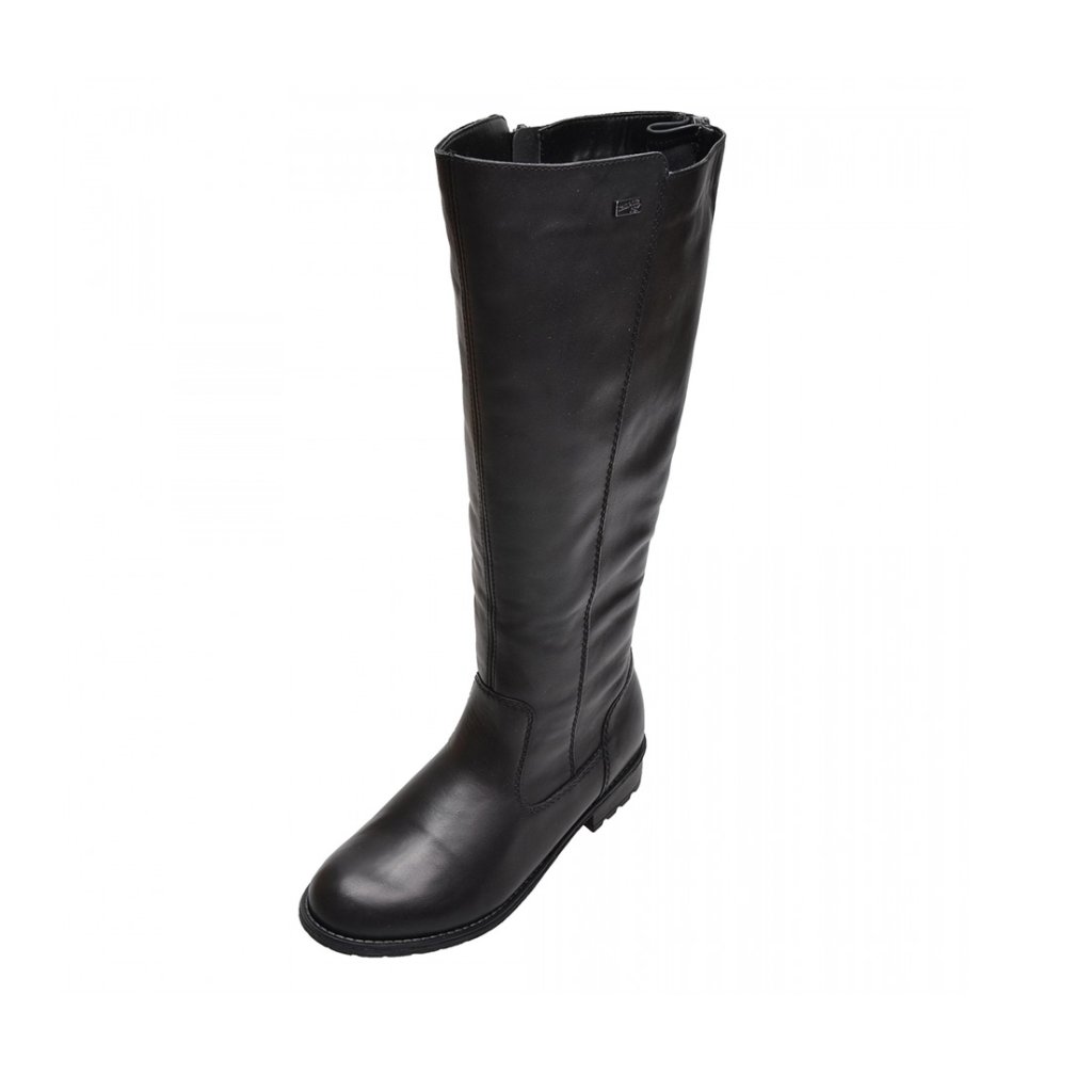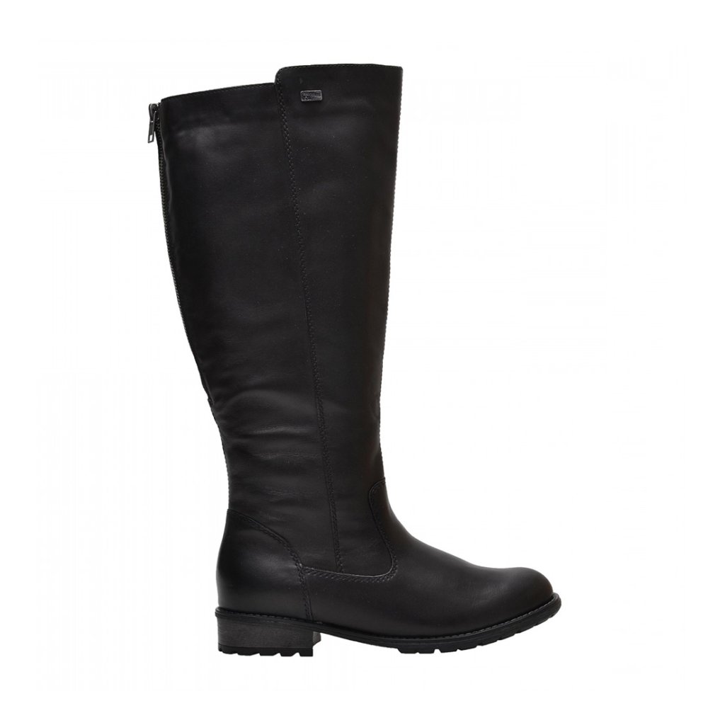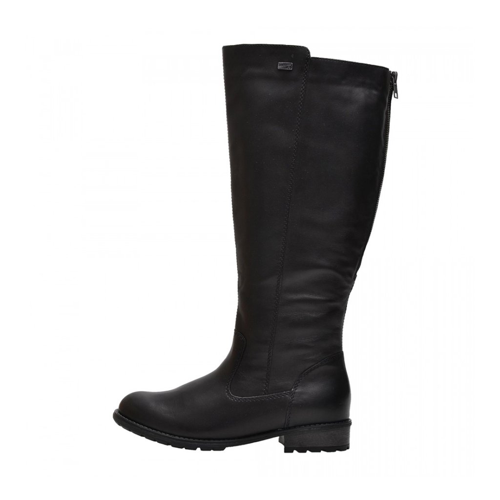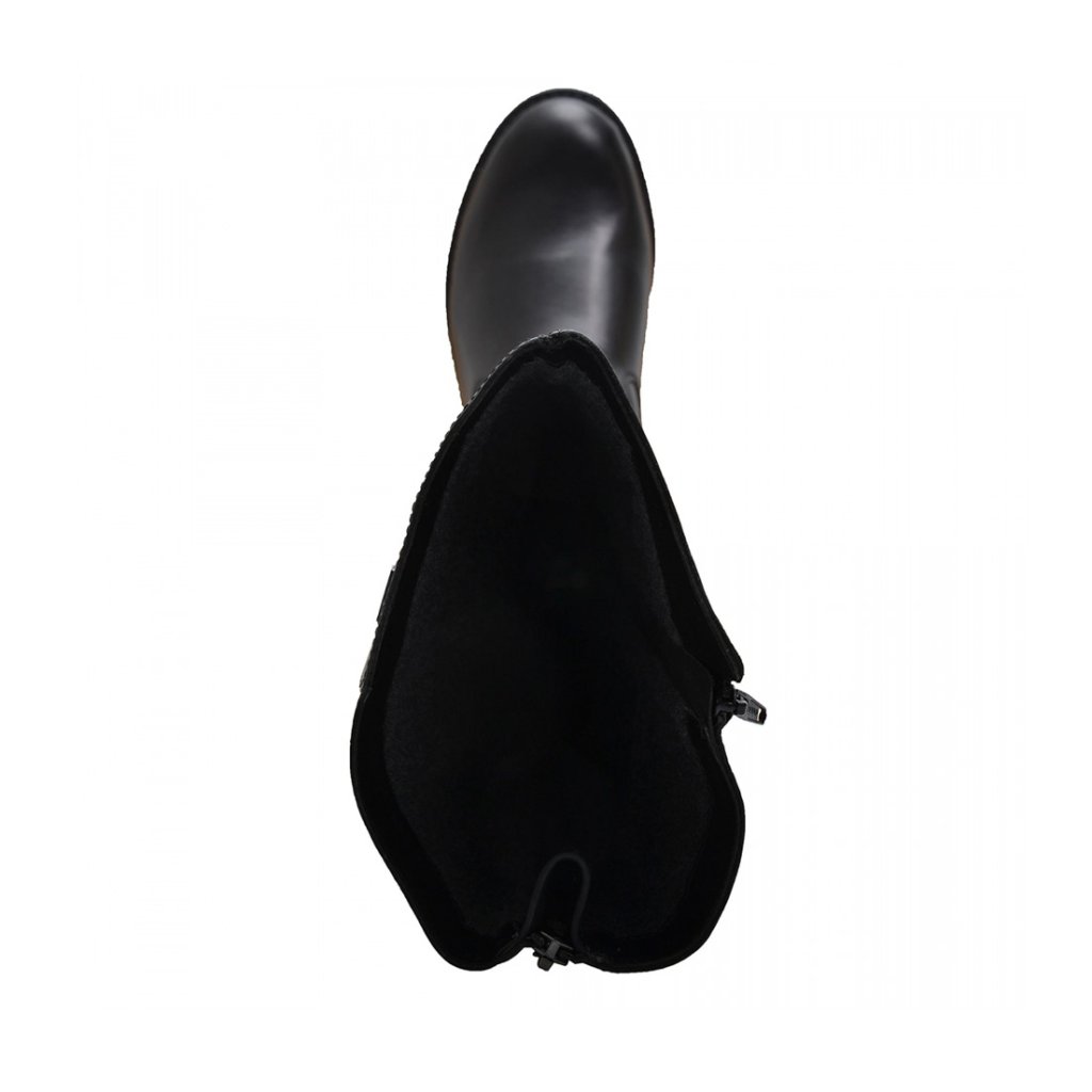 Elegantní dámské kozačky z pravé kůže extra široké kolem lýtka. Klasické kozačky v černé barvě se zateplením značky REMONTE. Pro komfortní obutí slouží funkční zip na vnitřní straně a zip v zadní části, který společně se všitou vsadkou umožní přizpůsobit si kozačku přímo na své lýtko