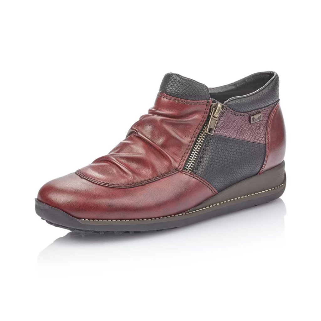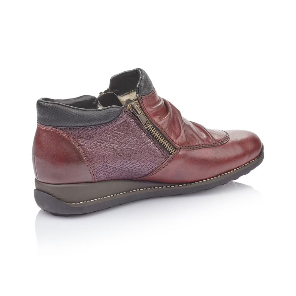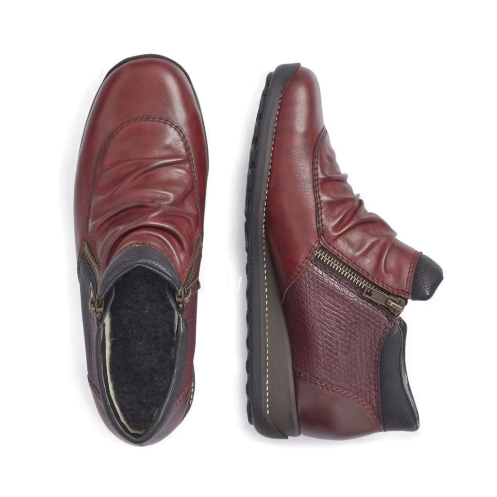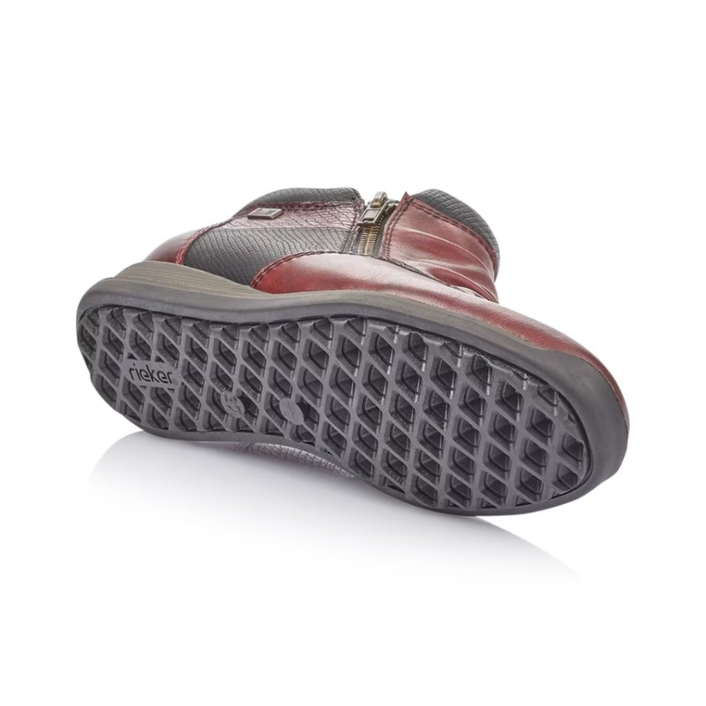 Krásné a pohodlné dámské kotníkové boty RIEKER ve stylové bordó barvě okouzlí na první pohled. Díky elegantnímu provedení je snadno sladíte s kalhotami i šaty.