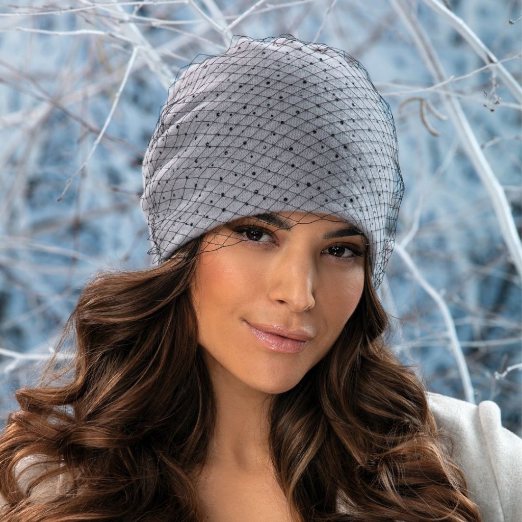 Minimalistický šedý design s francouzským závojem se snadno kombinuje s zimním outfitem, zatímco kvalitní přírodní materiál zajišťuje dokonalou prodyšnost a komfort po celý den.