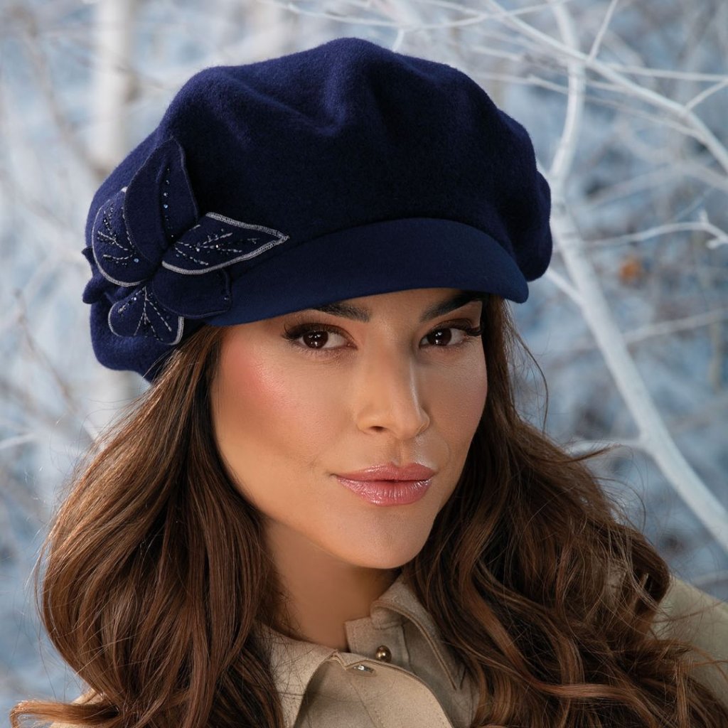 Tmavě modrá barva působí sofistikovaně a snadno se kombinuje s kabátem i bundou. Stylový kšilt chrání před větrem a jemná aplikace na boku dodává na originalitě. Čepice je navržena s důrazem na pohodlí, eleganci a ruční řemeslné zpracování. Hodí se pro každodenní nošení i jako vkusný doplněk do města. Ideální pro ženy, které chtějí zůstat v teple, ale zároveň si zachovat svůj osobitý styl.