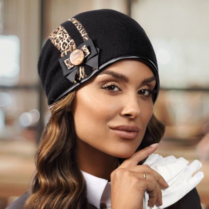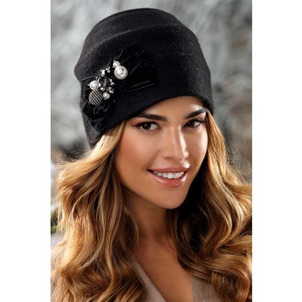 Dámská vlněná čepice s kovovou bižuterií podšitá flísem W-0524 černá
