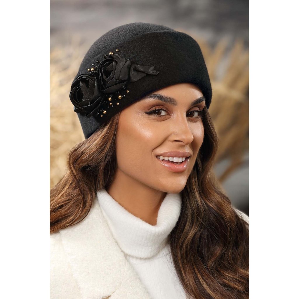 Černá zimní čepice je slušivá a krásně propracovaná s polstrovaným lemem, který je měkký a drží tvar, zdobená ručně vytvořenými růžemi a spolu s kamínky dodávají čepici jedinečný vzhled. Naše nabídka dámských zimních čepic je zaměřena na ženy, které oceňují kombinaci klasické elegance a nejnovějších trendů módy. U vlněných čepic se známkou Woolmark quality najdete vysokou kvalitu, originalitu a především funkčnost. Velký důraz je kladený na precizní ruční výrobu a luxusní bižuterii.