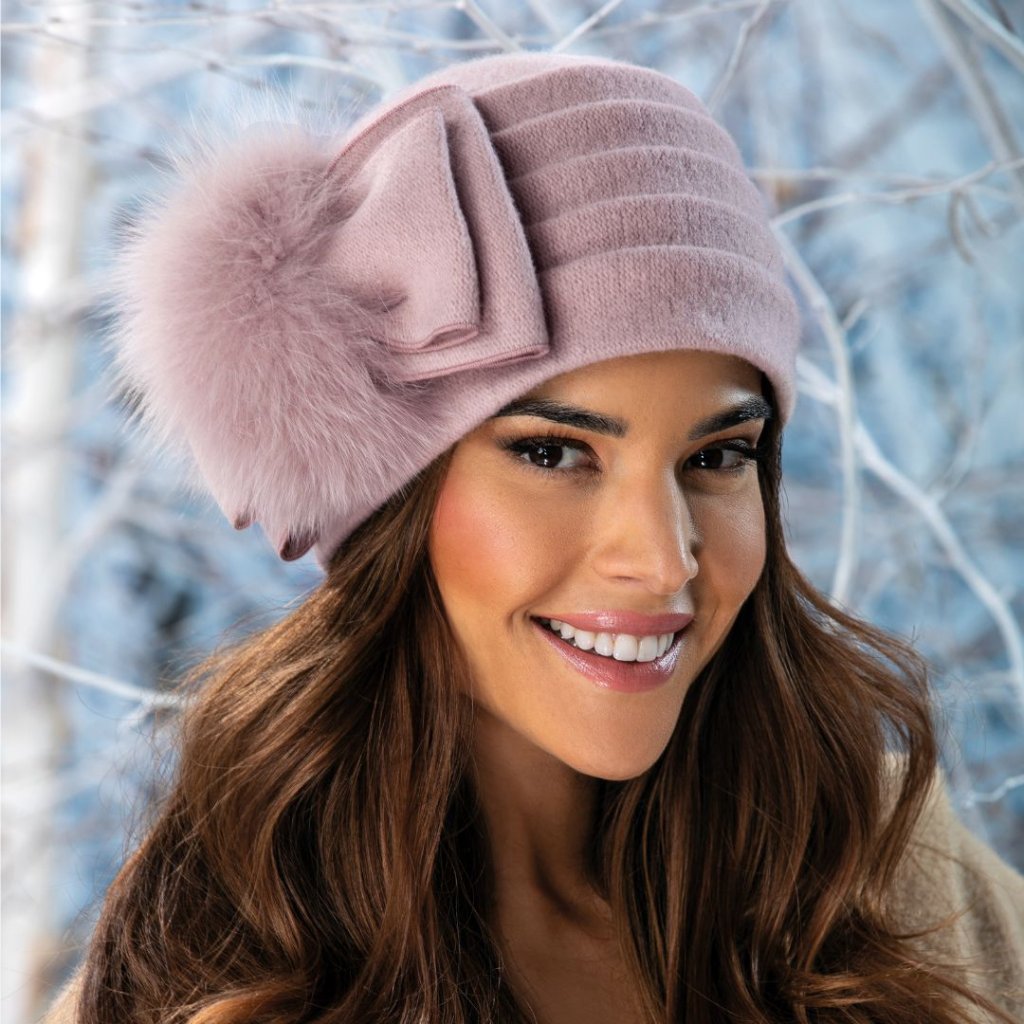 Dámská zimní čepice Krumlovanka – 100% vlna, starorůžová s kožešinou W-0007/540