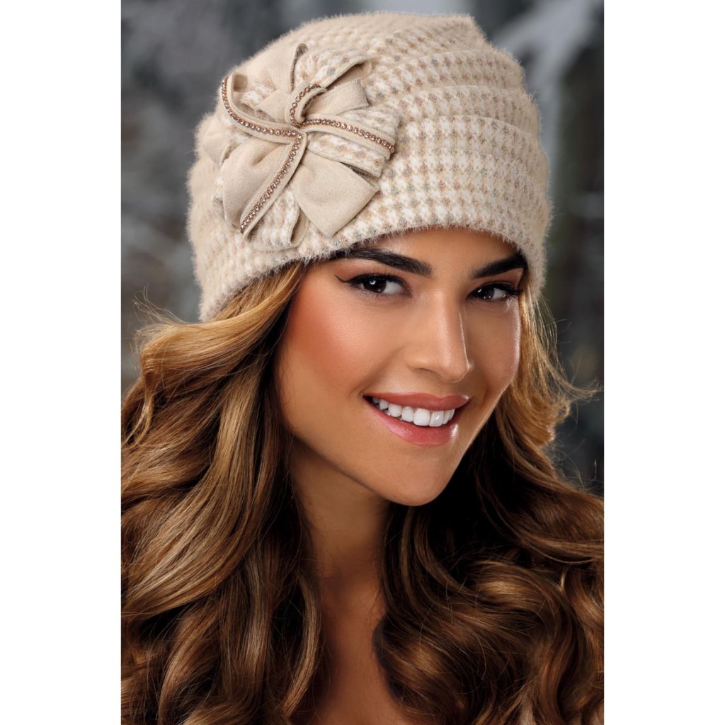 Krásná béžová zimní čepice z luxusní jemné měkoučké látky, která se dokonale přizpůsobí každé velikosti hlavy. Dámská čepice skvěle padne a je precizně propracovaná, zdobená ručně nápaditou aplikací s kamínky a prošíváním, která čepici dodává jedinečný vzhled. Čepice má teplou podšívku. Naše zimní dámské čepice vás zahřejí a zároveň jsou velice slušivé a komfortní.