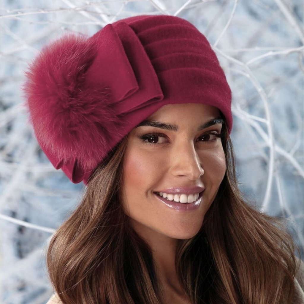 Jedinečná dámská čepice z nejkvalitnější vlny s certifikátem Woolmark, která se dokonale přizpůsobí každé velikosti hlavy. Elegantní zimní čepice má originální charakter, který jí dodává skvěle propracovaný slušivý střih a ručně tvořená krásná mašle zakončená kožešinou v tónu barvy vlny. S touto čepicí vykouzlíte více variant, díky základnímu střihu můžete mašli nosit jak na boku, tak i vzadu.