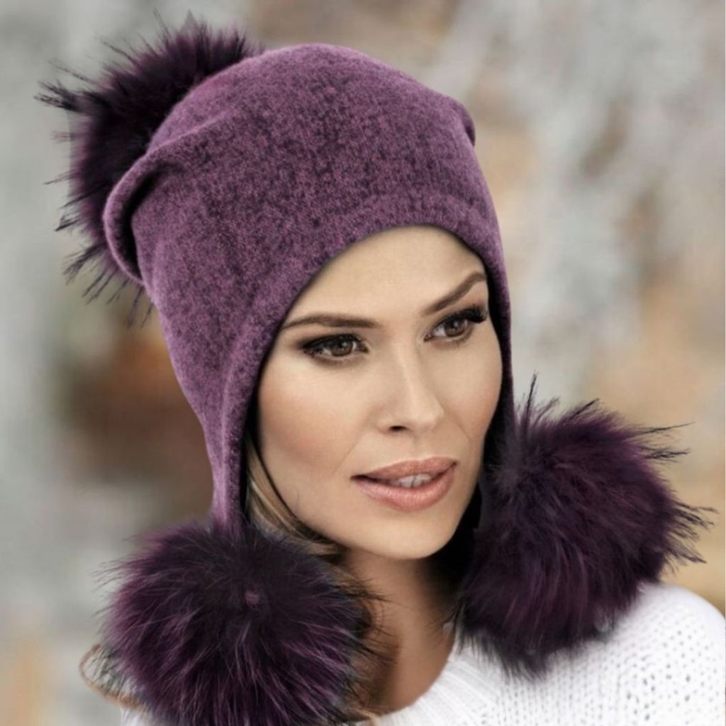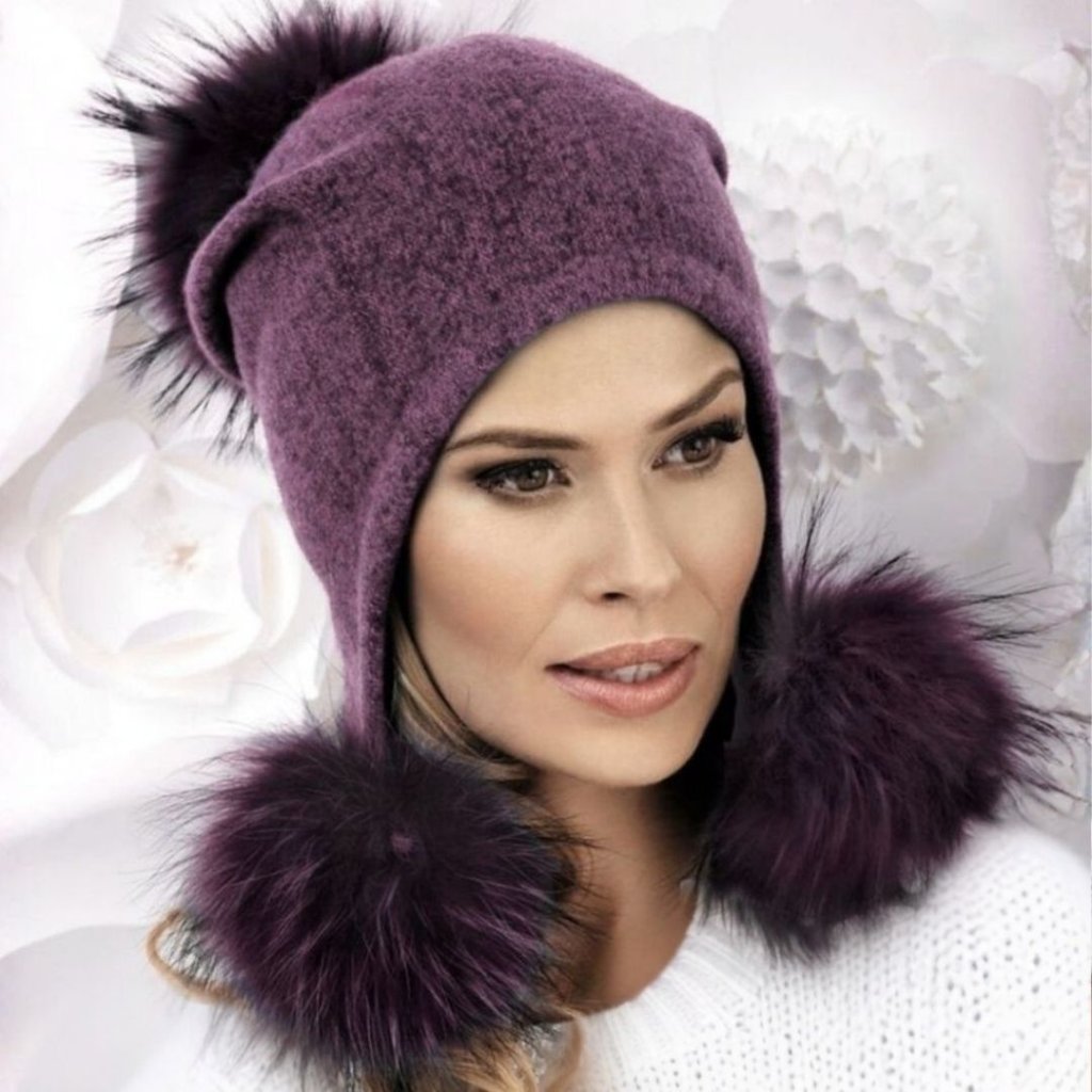 Originální zimní fialová čepice je ozdobená třemi kožešinovými bambulemi, které jsou nabarvené v tónu barvy vlněné čepice. Dámský kulich má skvělý spadlý střih, který dobře sedí a spodní dvě bambule krásně ozdobí Vaší kapuci nebo kabátek. Čepice má krásnou fialovou melanž barvu, která rozzáří Váš zimní outfit. Tepelný komfort v mrazivém počasí zaručí 100% vlna a flísová podšívka.