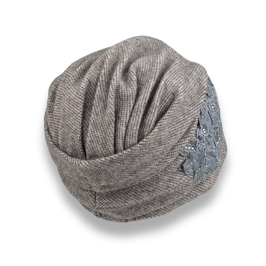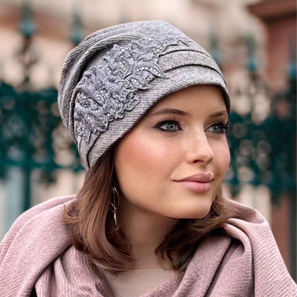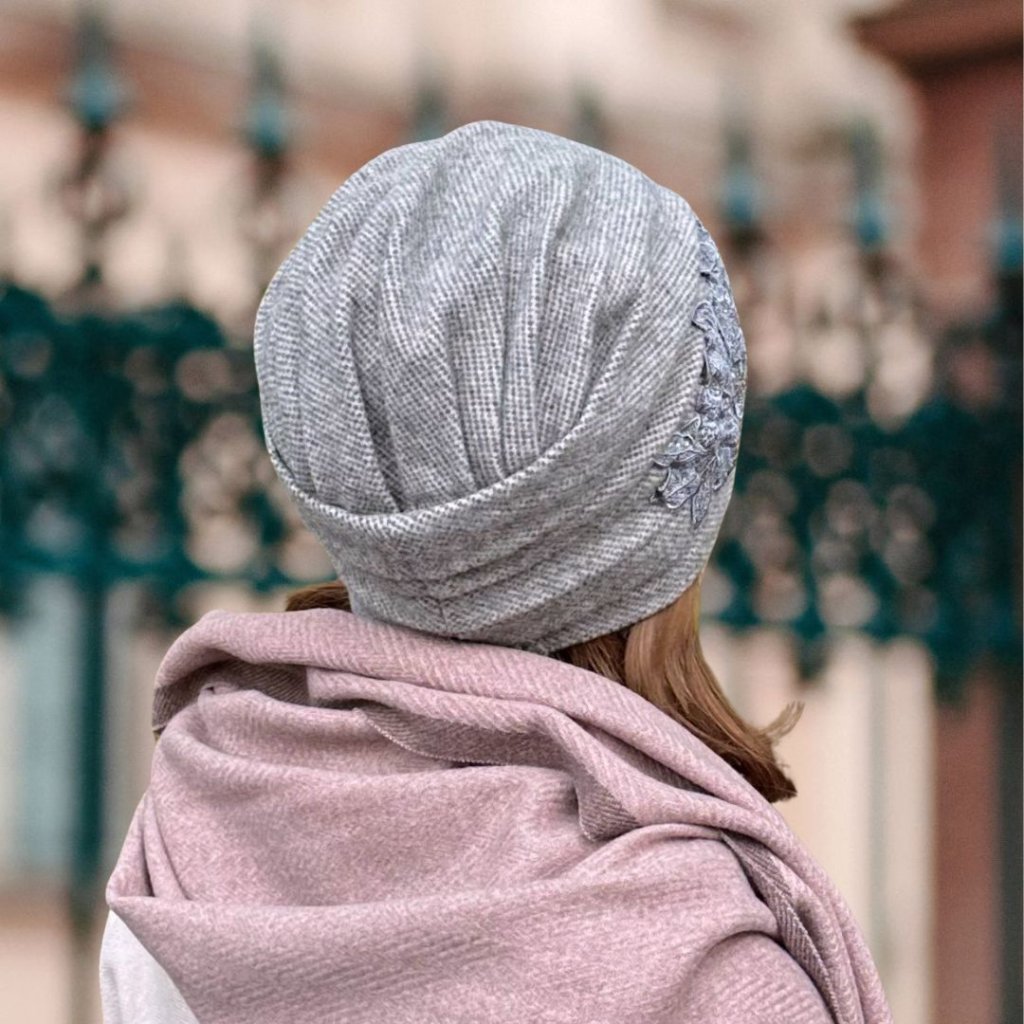 Dámská čepice v šedorůžovém melanž je úžasně řemeslně zpracovaná na dotek z velmi příjemného a jemného materiálu. Čepice má flísovou podšívku a je ozdobená krajkovou aplikací s kamínky tón v tónu. Tuto celoroční čepici doladíte i k ležérnímu stylu oblečení. Velikost vhodná na obvod hlavy 55 cm - 58 cm.