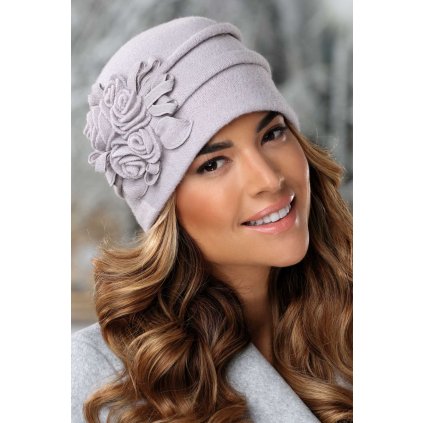 Mimořádně slušivá světle šedá zimní čepice z nejkvalitnější vlny s certifikátem Woolmark, která se dokonale přizpůsobí každé velikosti hlavy. Dámská čepice skvěle padne a je precizně propracovaná, zdobená ručně vlněnou aplikací , která čepici dodává jedinečný vzhled. Naše zimní dámské čepice vás zahřejí a zároveň jsou velice slušivé a komfortní.