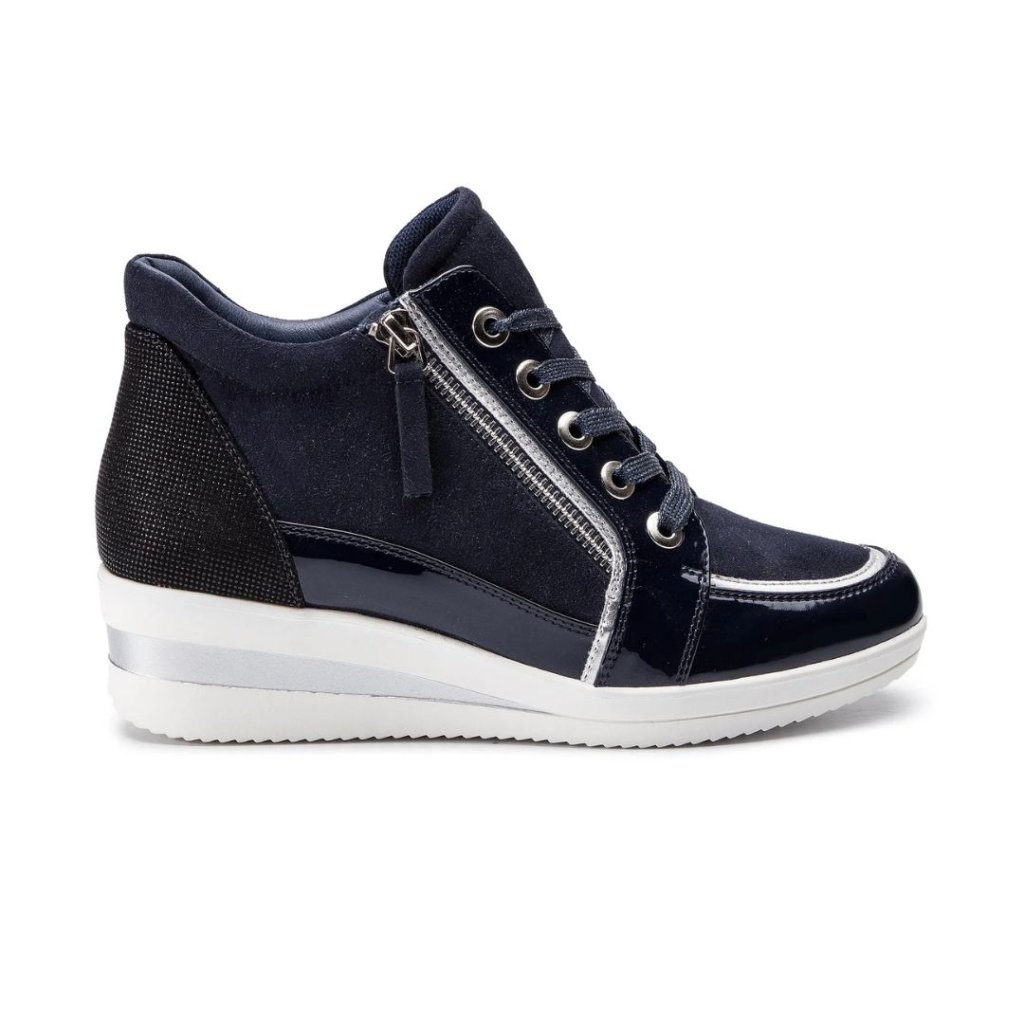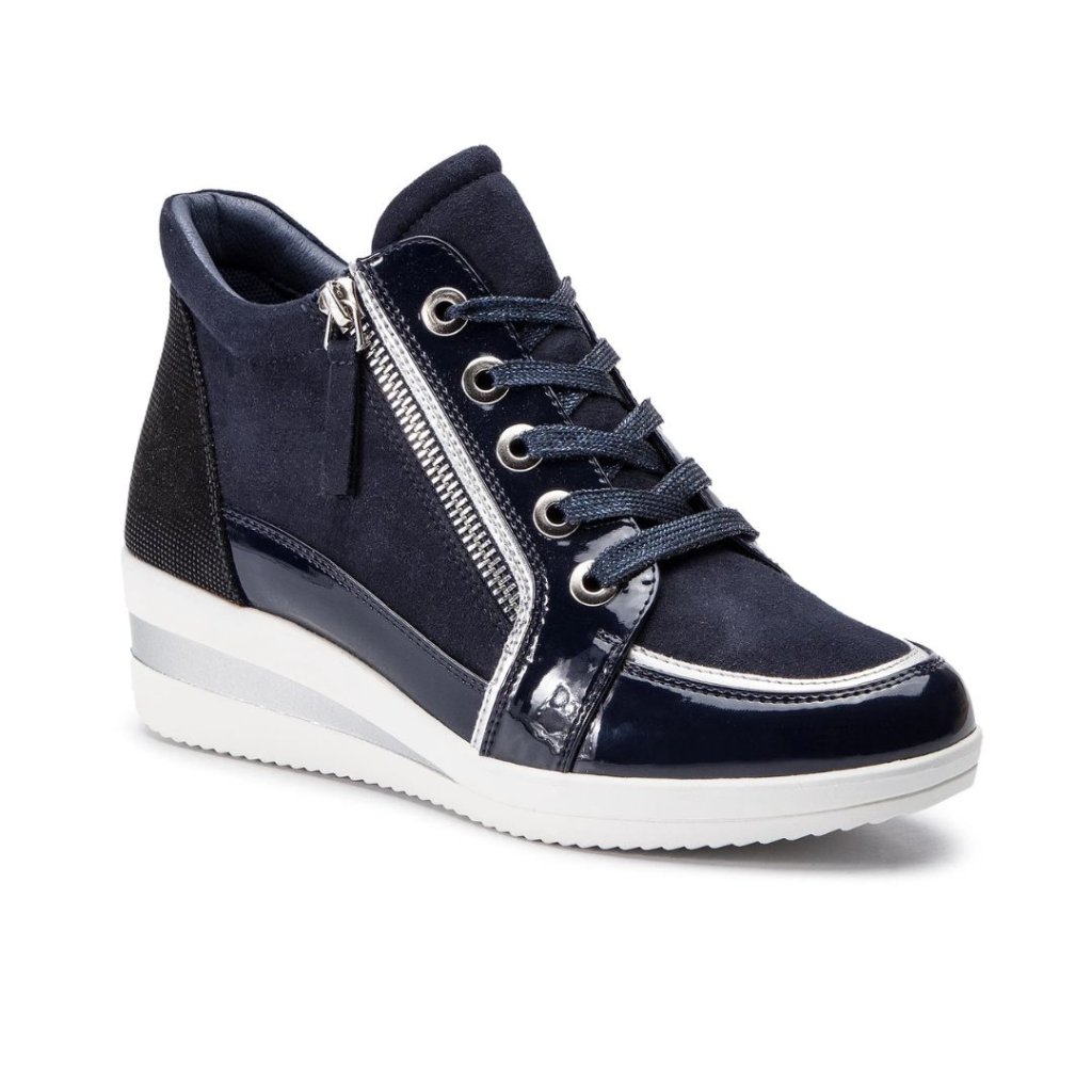Dámské tenisky TAMARIS na klínku. Stylové dámské tenisky TAMARIS v modré barvě zaujmou moderním designem i pohodlným nošením. Tento model je postaven na klínovém podpatku po celé délce podešve, který nenápadně prodlouží nohu a zároveň zachová komfort při chůzi.