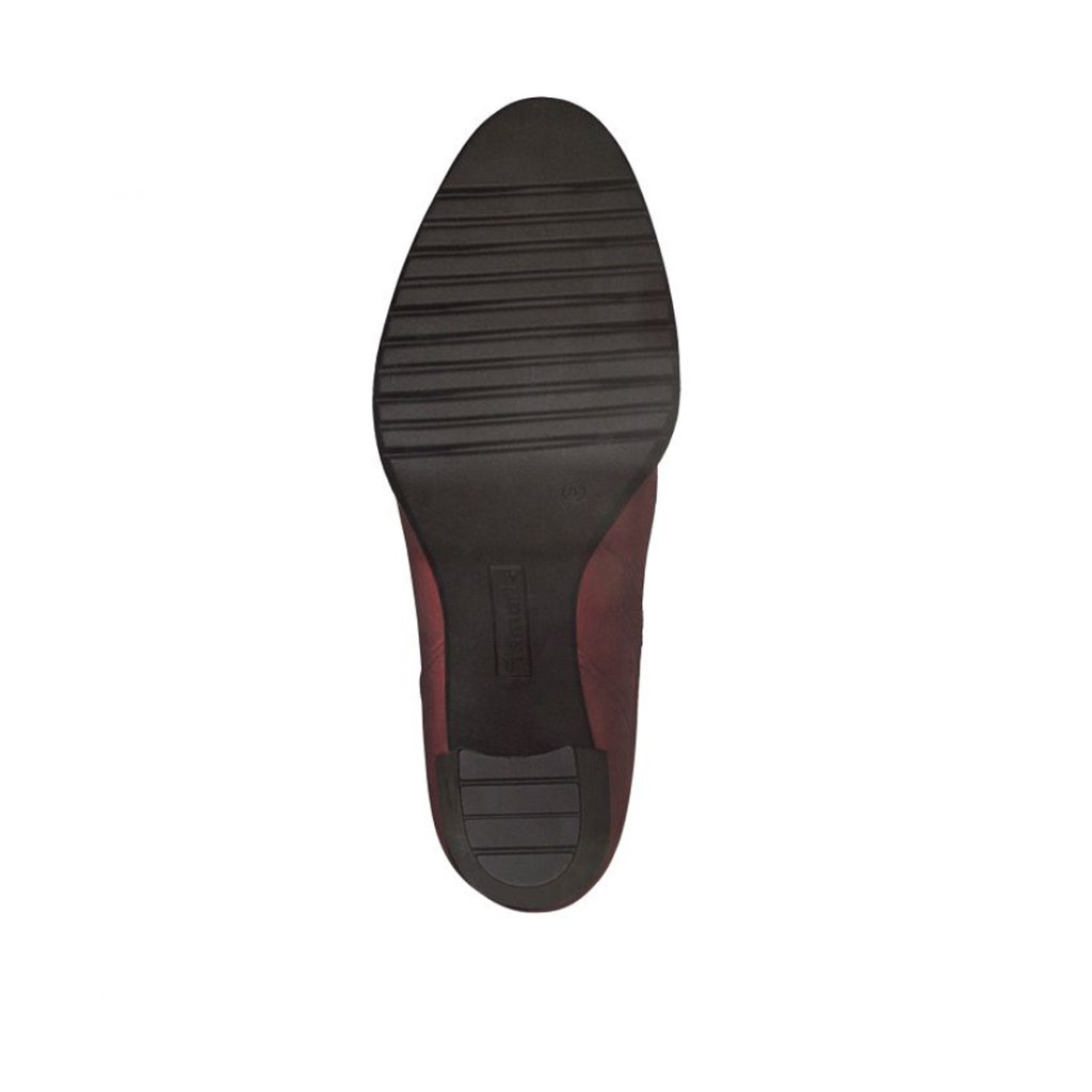 Vínové dámské kozačky Tamaris zaujmou nejen svým elegantním vzhledem, ale i pohodlím. Kožený svršek doplňuje hřejivá textilní podšívka. Stélka s paměťovou pěnou TOUCH-IT se dokonale přizpůsobí tvaru chodidla, zatímco technologie ANTISHOKK v oblasti paty tlumí nárazy při chůzi. Stabilní 7,5cm podpatek spolu s pružnou, protiskluzovou platformovou podrážkou zajišťuje bezpečný krok i během zimních dní. Zip po celé vnitřní délce umožňuje snadné nazouvání. Stylový a pohodlný model pro každodenní nošení.