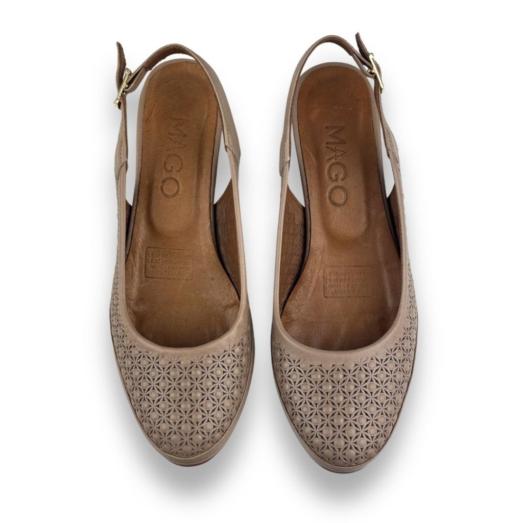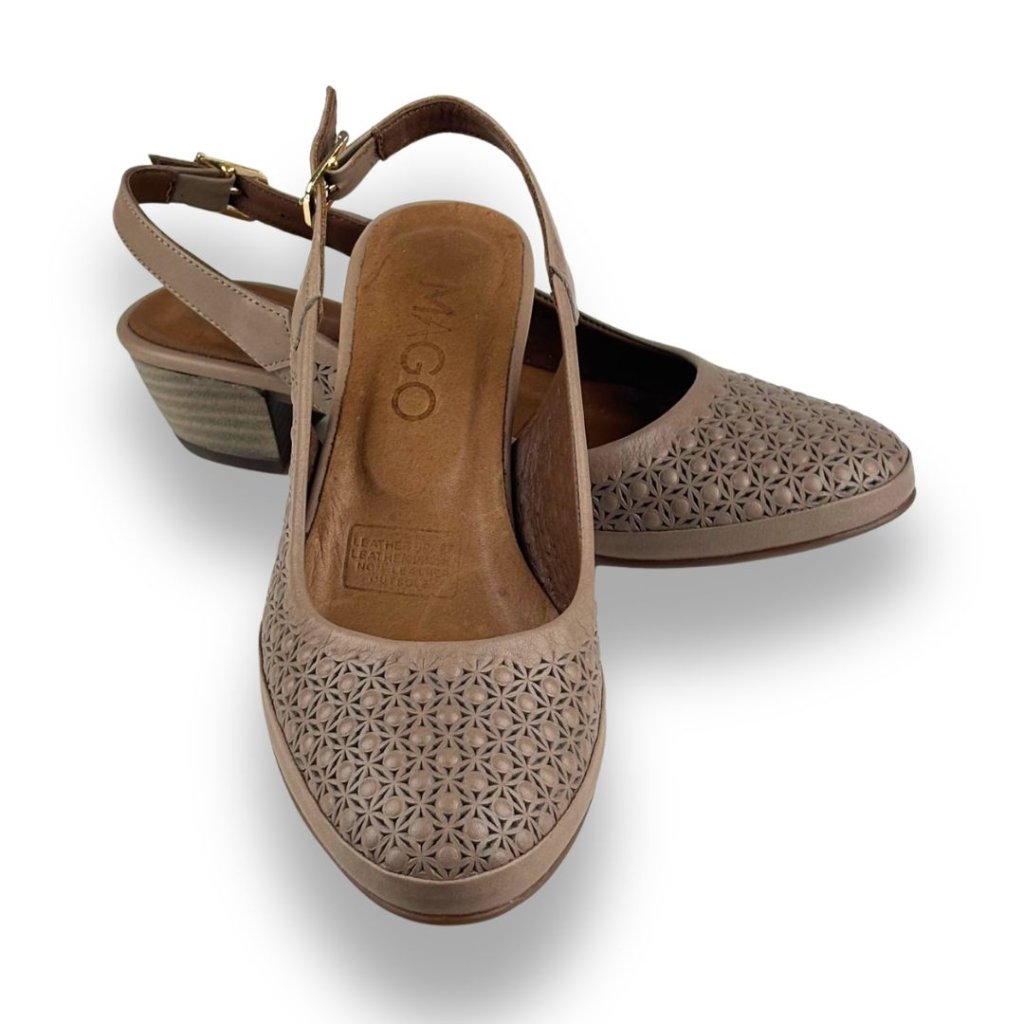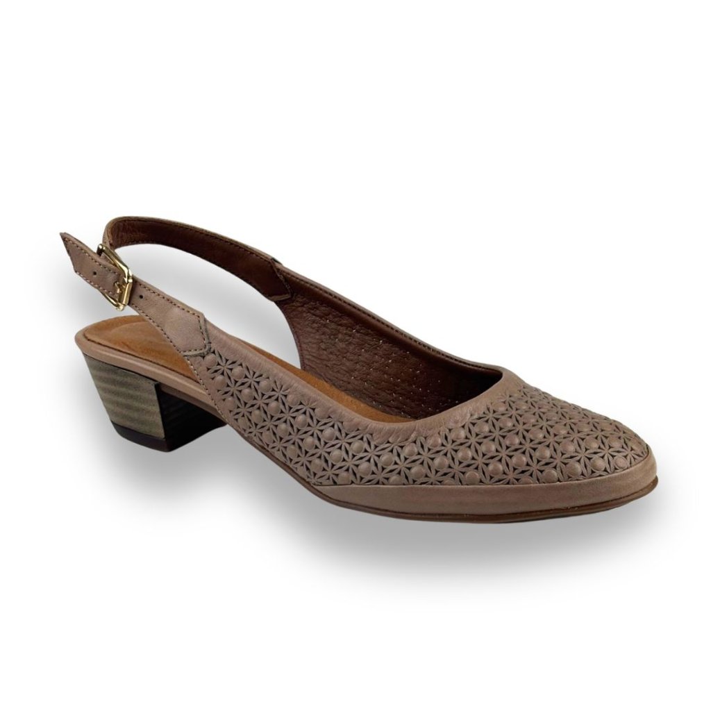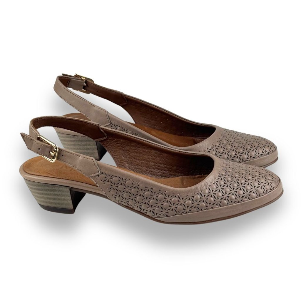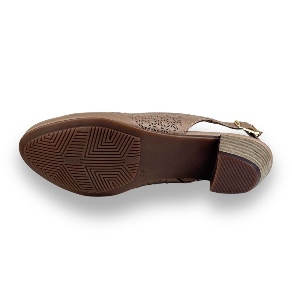 Dámské lodičky v hnědé barvě. Perforace a zapínání na sponu, která pomůže přizpůsobit botu noze. Podpatek je ve stejné barvě jako boty.