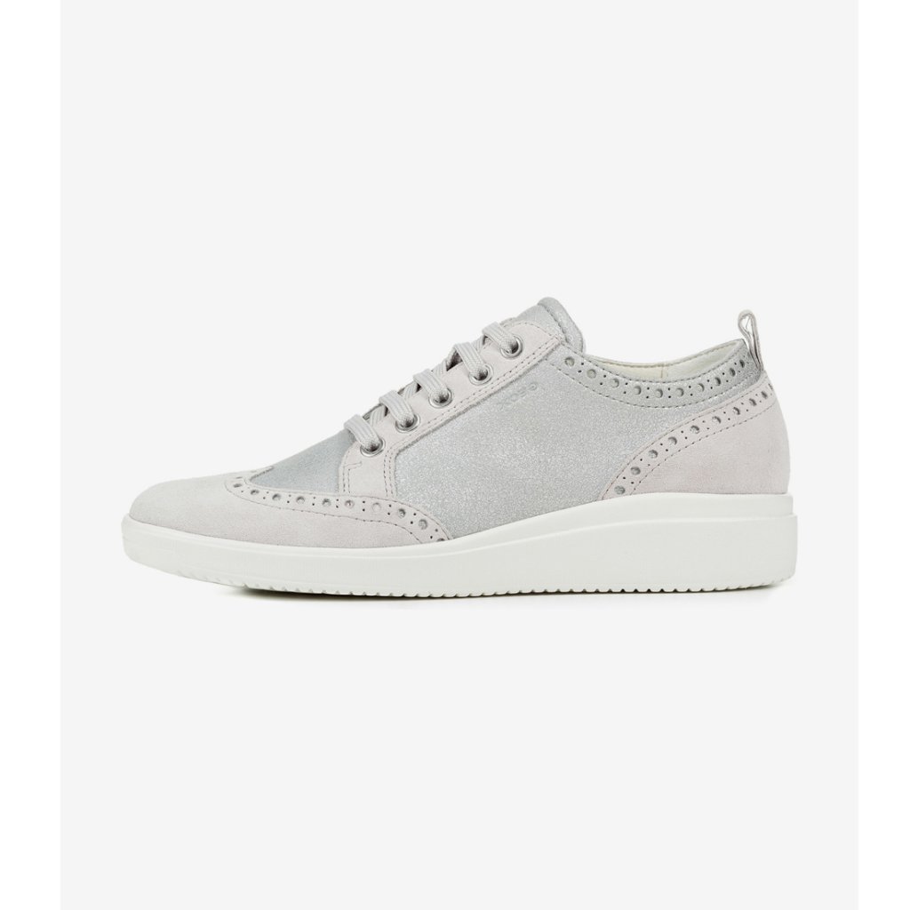 Dámské šněrovací tenisky Geox v šedo stříbrné kombinaci jsou z kvalitní kůže a mají minimalistický design, který doladíte k různým outfitům. Tenisky s technologií Geox Respira ( "bota dýchá"- odvětrává obuv membránou ve stélce přes podešev).