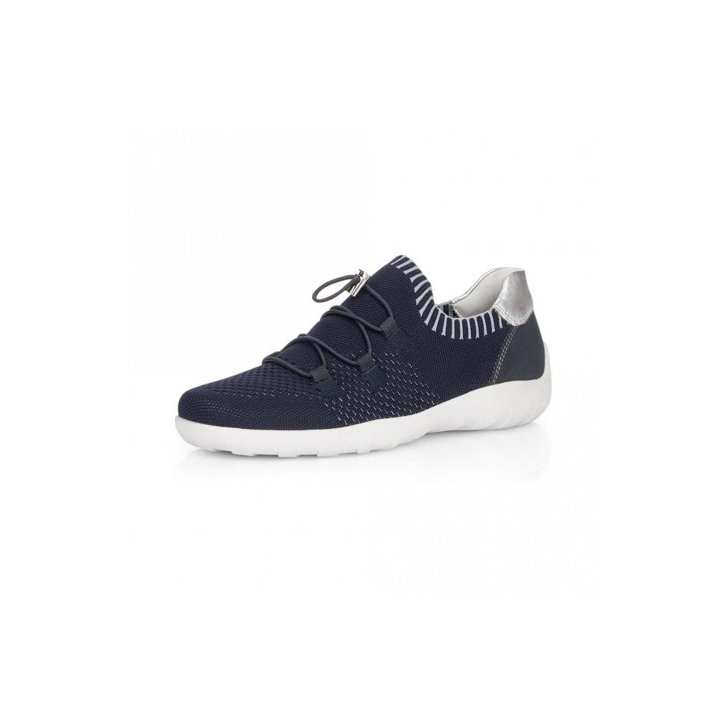 Styl a pohodlí v jednom, přesně to nabízejí dámské tenisky Remonte v modré barvě. Kombinace textilního a syntetického svršku je doplněna o hladký dekorativní prvek v oblasti paty, který dodává botám originální a moderní vzhled.