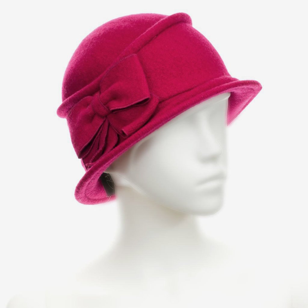 Dámský vlněný klobouček v malinové barvě s malou krempou je ozdobený vlněnou mašlí. Tento klobouček plně nahradí čepici a ocení ho i zákaznice s větším obvodem hlavy. Klobouček má krempu, která drží tvar, ale zároveň je ohebná a tak ho budete moci dobře kombinovat i s vyšším límcem nebo šálou.