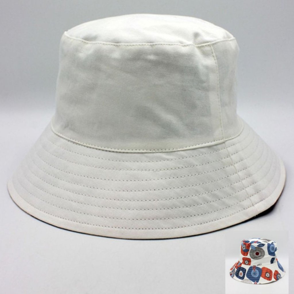 Dámský letní bavlněný klobouk - oboustranný Bucket P-12606 bílý