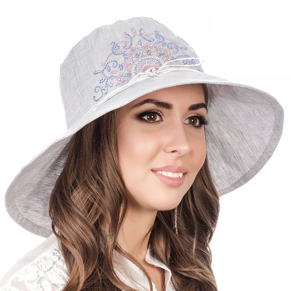 Letní lněný klobouk se zdobením.