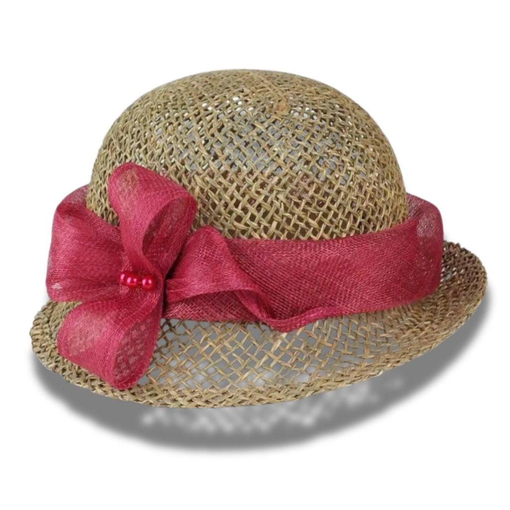 Dámský letní klobouk z mořské trávy zdobený starorůžovým sisalem Ka-01