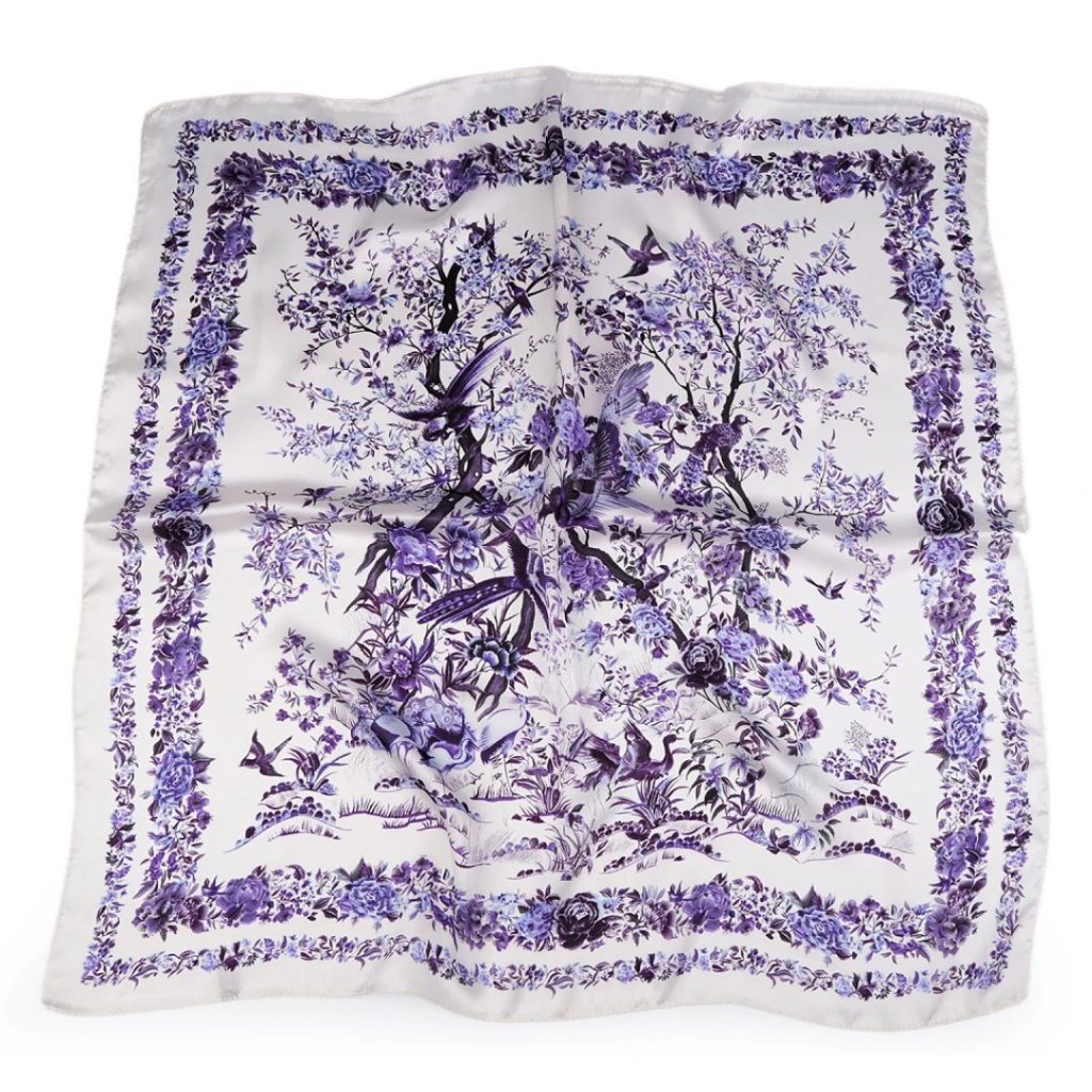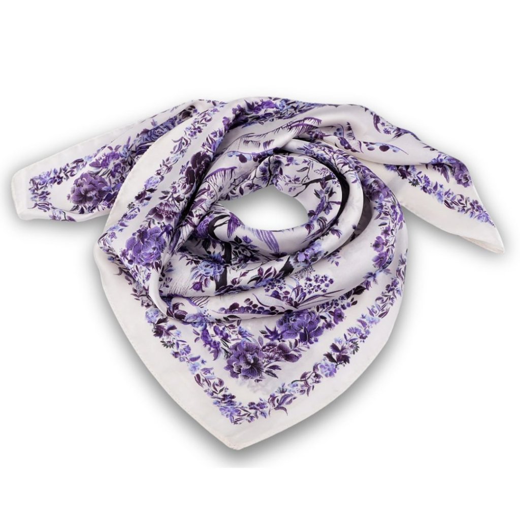 Tento saténový šátek s jemným fialovým květinovým vzorem je ideální volbou pro každodenní nošení. Je vyroben z hebkého materiálu, který je příjemný na dotek, a díky své velikosti 70x70 cm ho snadno uvážete do elegantního uzlu. Tento šátek dokonale podtrhne váš vzhled a přidá šmrnc jakémukoliv outfitu.