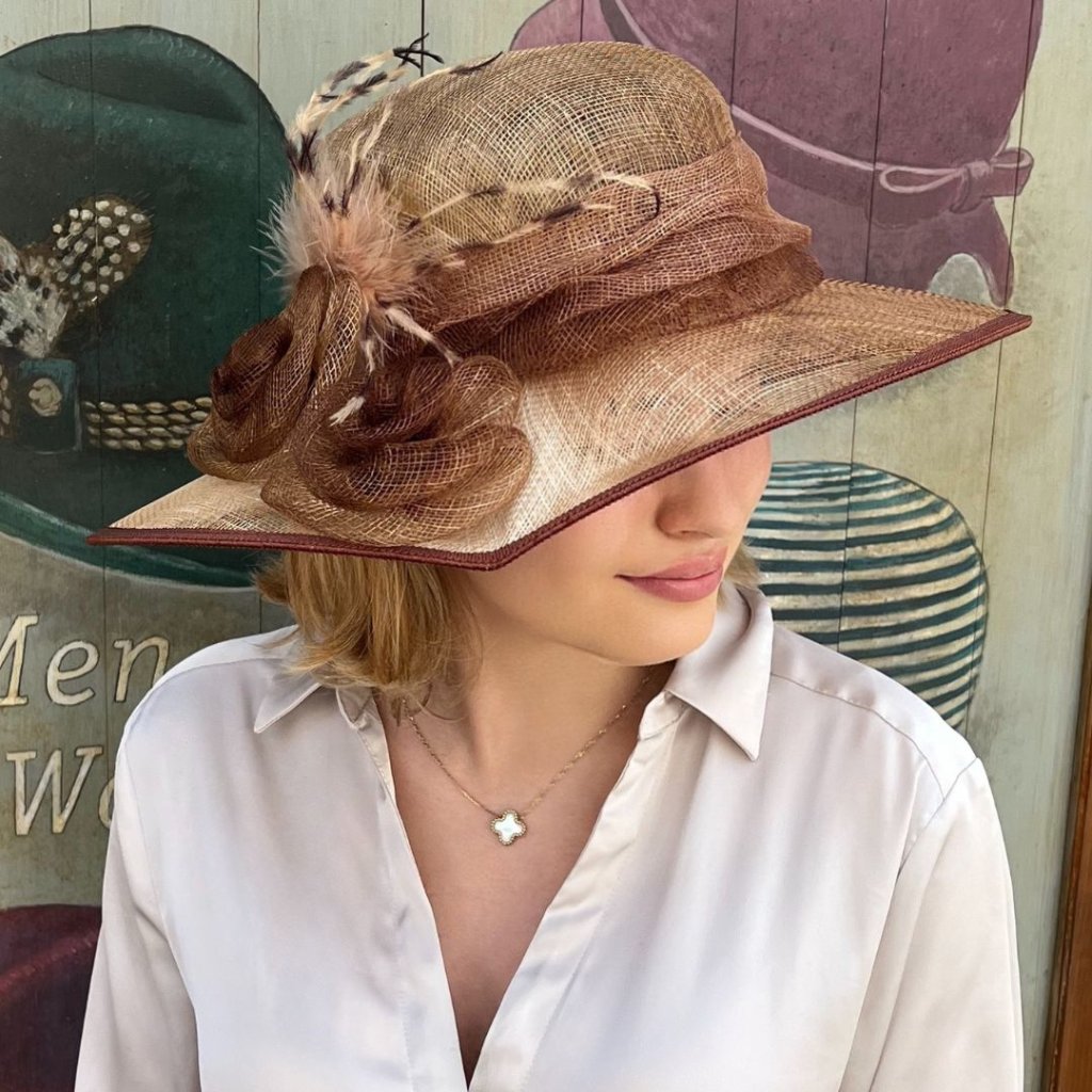 Dámský sisalový slavnostní klobouk 100% sisal - hnědý C-072