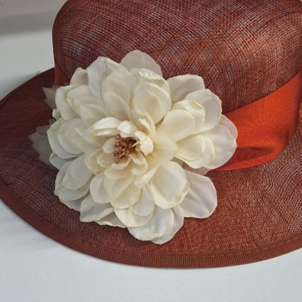 Ručně vyráběný luxusní slavnostní klobouk s květem
