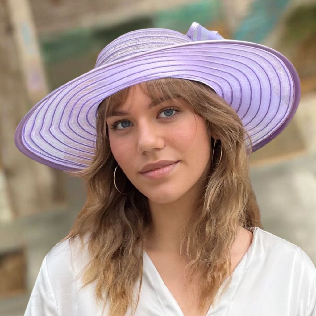 Dámský slavnostní klobouk Big Brim s mašlí - fialový C-041