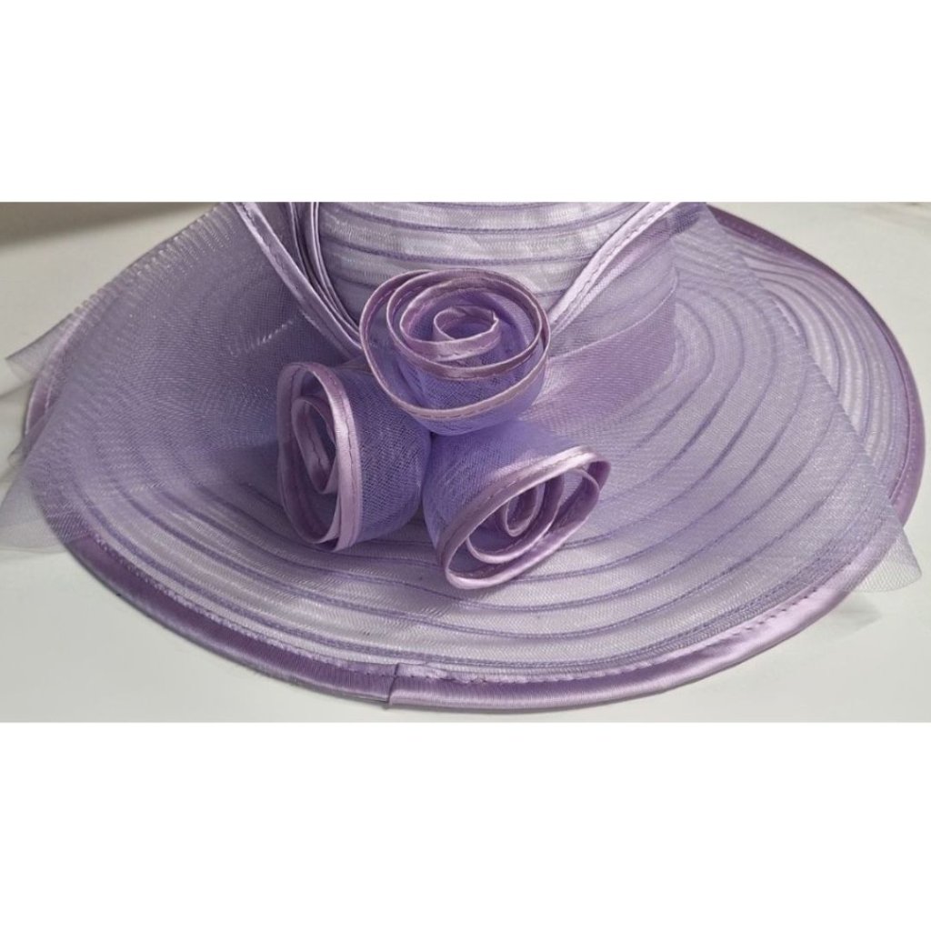 Slavnostní fialový Big Brim hat klobouk s ozdobou