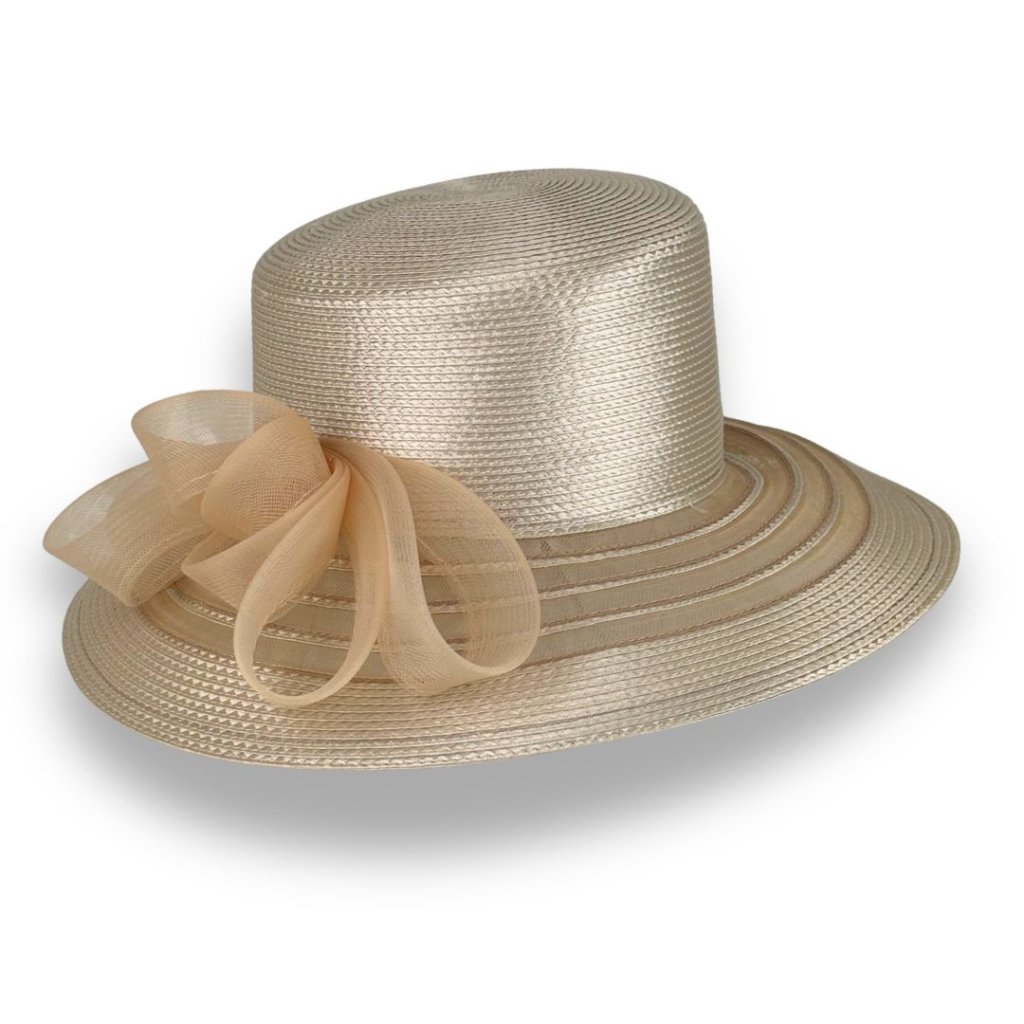 Dodejte svému outfitu šmrnc s tímto elegantním krémovým kloboukem, který je ztělesněním nadčasové ženskosti a precizního řemesla. Zdobený béžovými aplikacemi, vše v dokonale sladěných tónech, které podtrhnou vaši přirozenou eleganci.