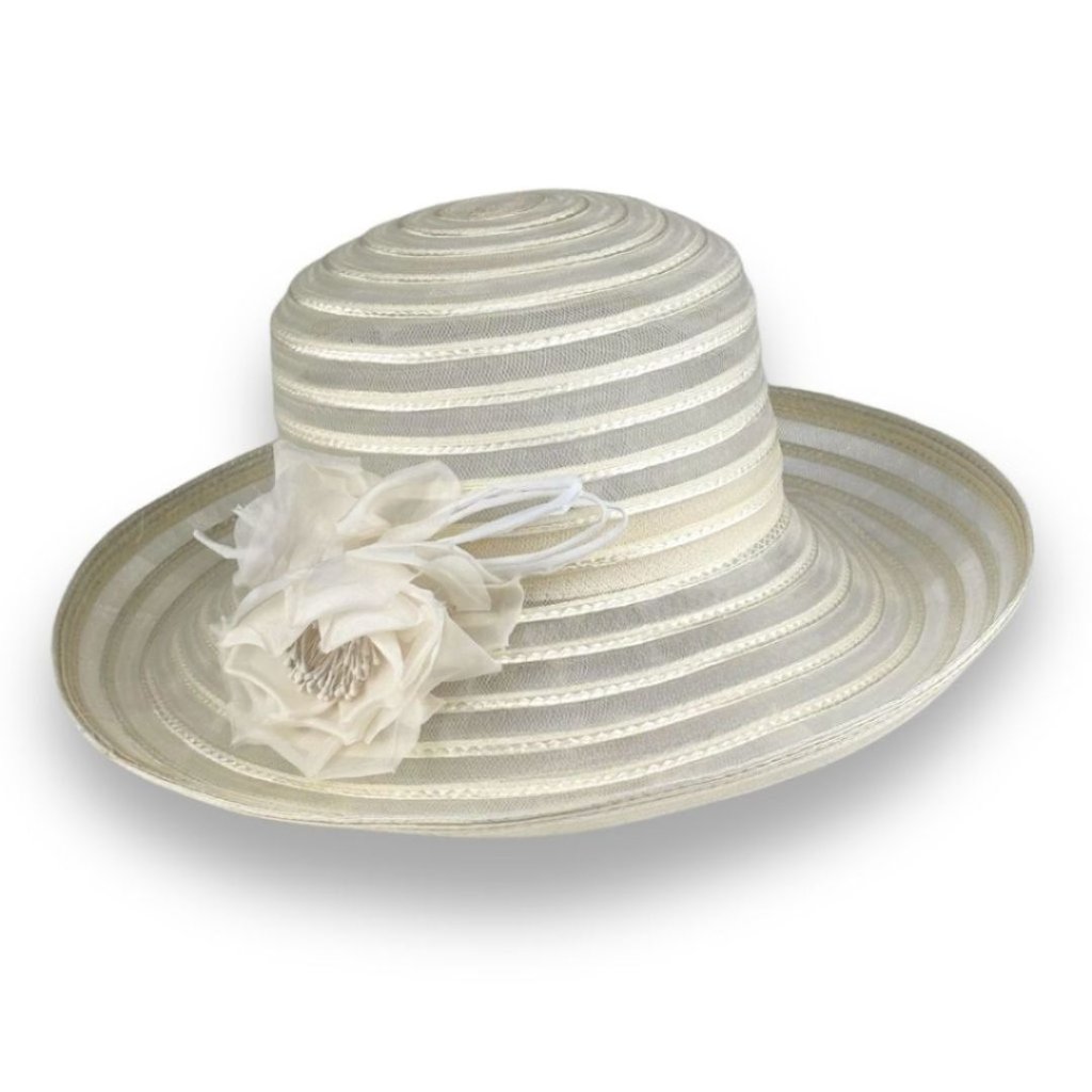 Dodejte svému outfitu šmrnc s tímto elegantním bílým kloboukem, který je ztělesněním nadčasové ženskosti a precizního řemesla. Zdobený bílými aplikacemi, vše v dokonale sladěných tónech, které podtrhnou vaši přirozenou eleganci.