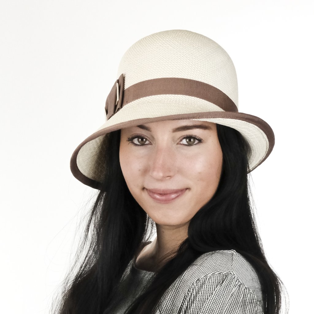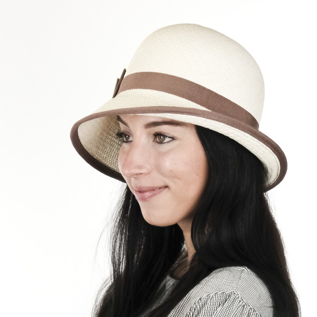 Ekvádorská panama klobouk Cloche 14200 s hnědou stuhou