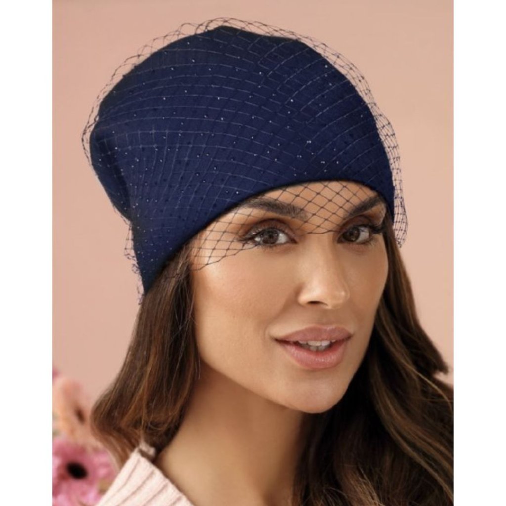 Elegantní dámská bavlněná čepice s francouzským závojem W-0633/161 modrá