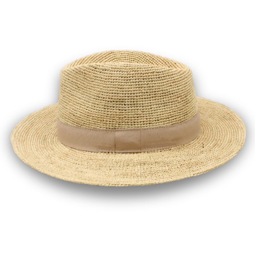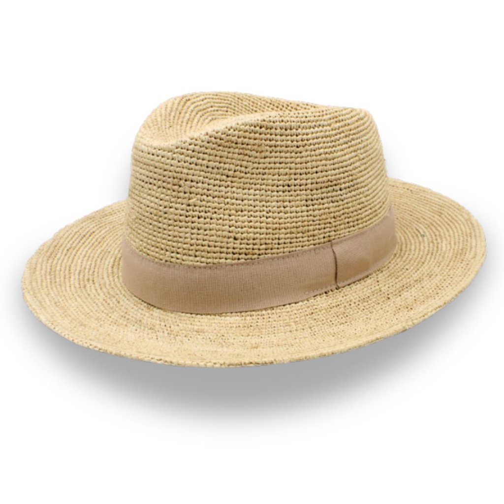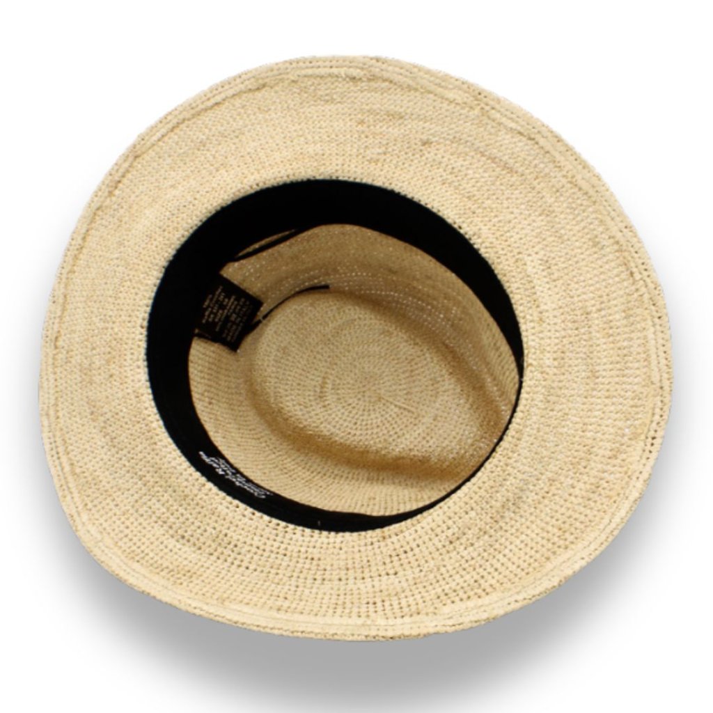 Exkluzivní Crochet klobouk Fedora 100% Rafia natural Handcrafted P-931-241