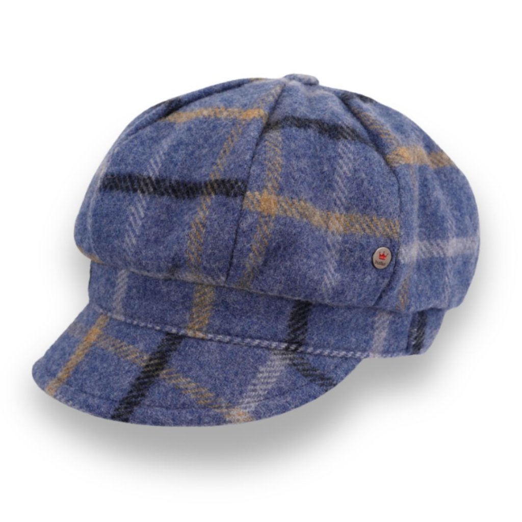 John Hanly Dámská zimní čepice s kšiltem 100% vlna - modrá kostka Ba-31460876-278