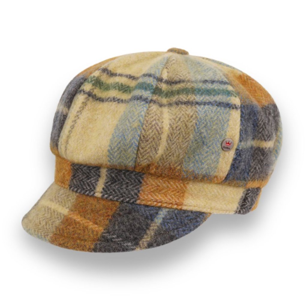 Objevte luxusní dámskou zimní čepici s kšiltem od renomované irské značky John Hanly, která je zárukou kvality a řemeslné tradice. Tato stylová čepice je vyrobena ze 100% přírodní vlny Donegal Tweed, známé svou odolností a jedinečným vzhledem. Každý kus má originální barevný kostkovaný vzor, díky němuž je každá čepice naprostým unikátem.